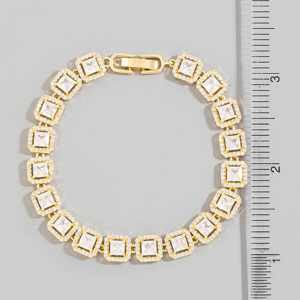 • A stunning piece that is sure to turn heads, this bracelet radiates a sleek square cubic zirconia chain link design. This item is a great way to add some texture and dimension to any outfit. Available in G, S. This item is sold in packs of 12.