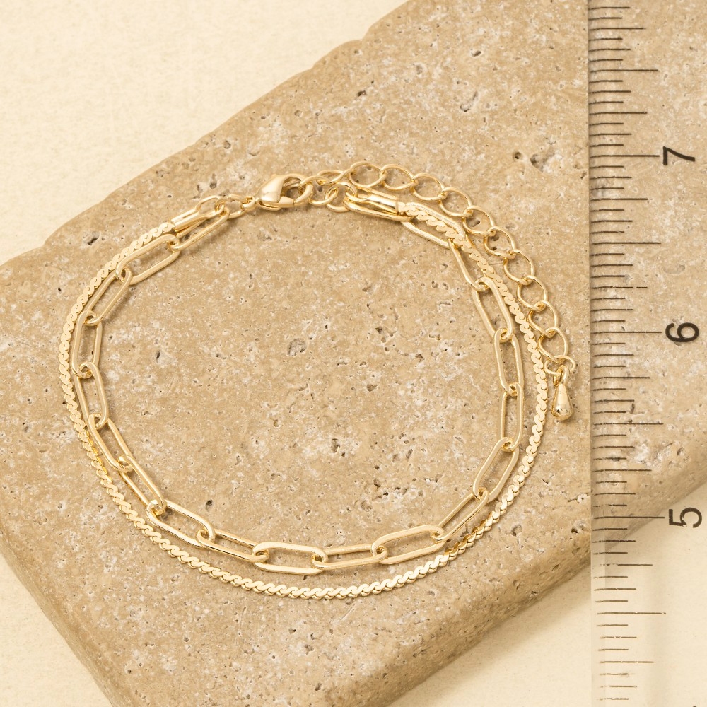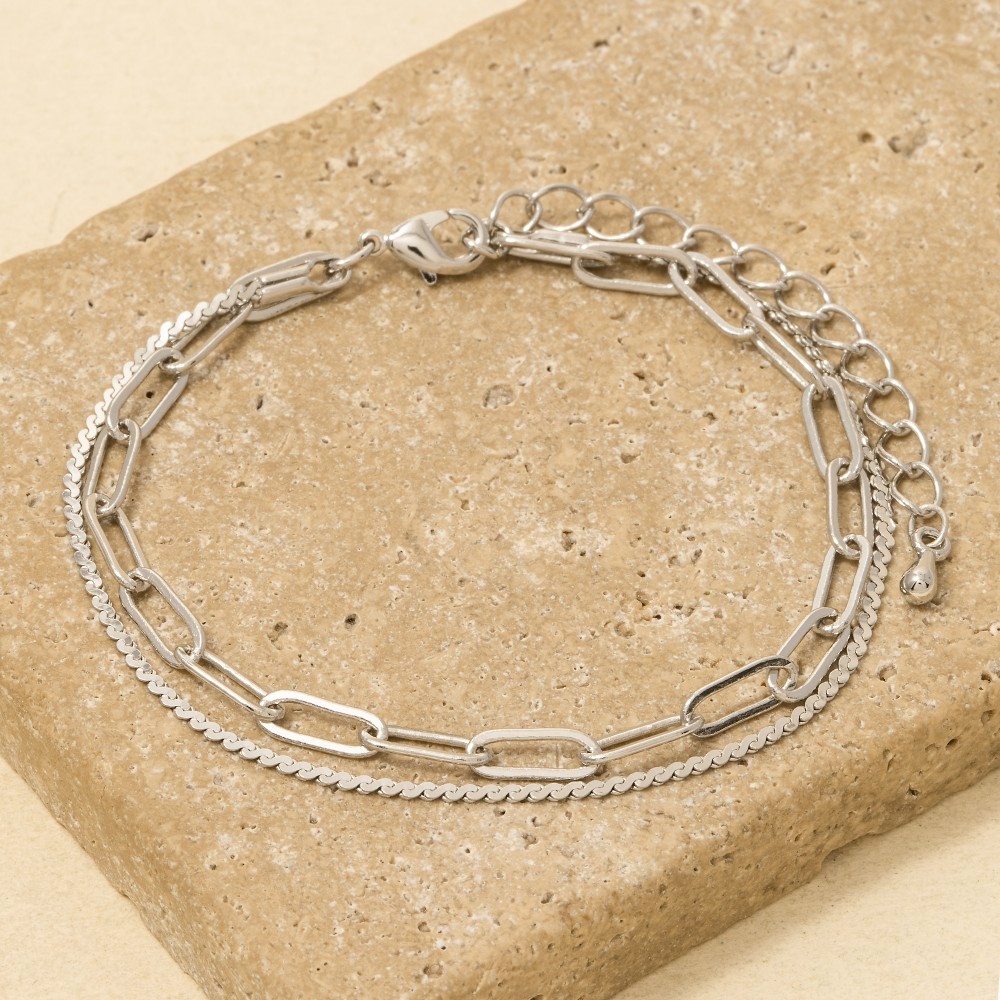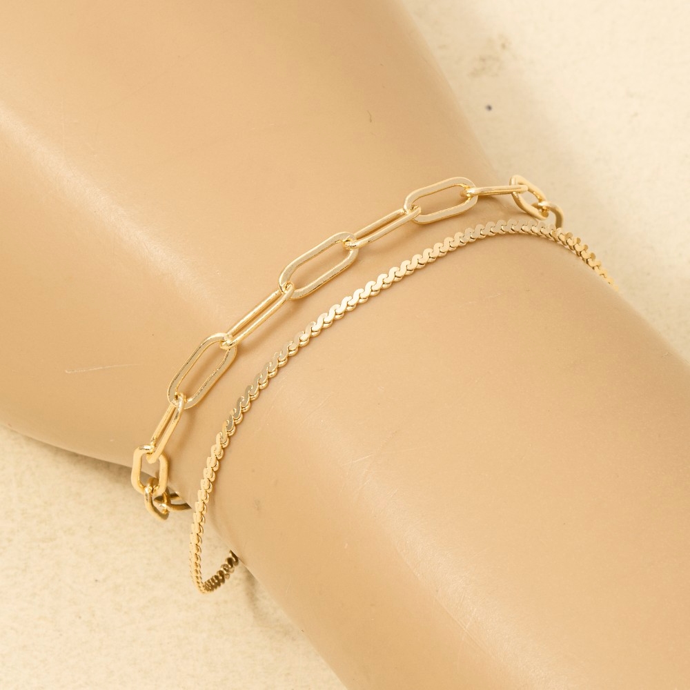 Add a touch of luxury to any outfit, this chain bracelet flaunts a luxurious two row rope chain and oval design. Elevate your personal style effortlessly with this versatile chain bracelet, an essential component for a refined wardrobe. This item is sold in packs of 1.