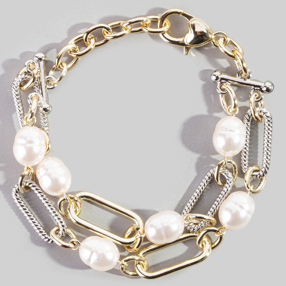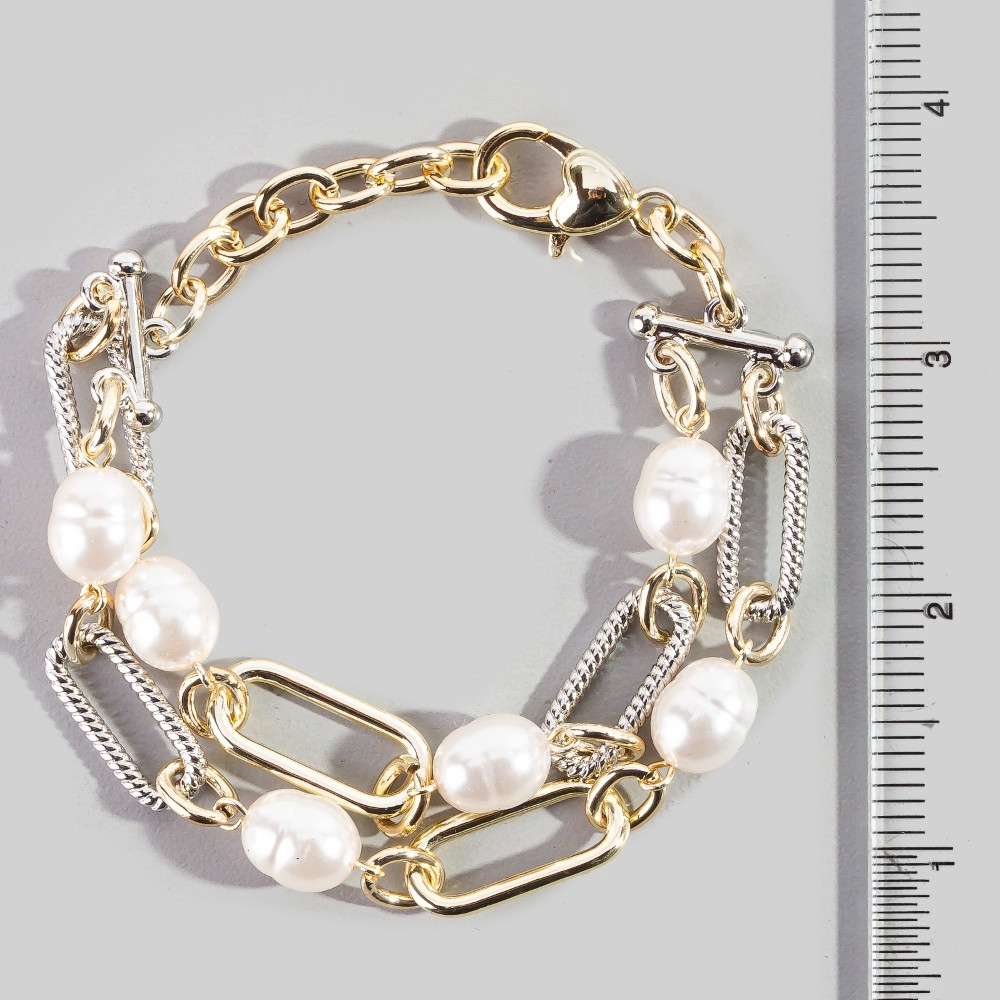 • A modern classic, this chain bracelet introduces an exceptional two tone pearl and oval design. Redefine your wardrobe with this versatile chain bracelet, a timeless addition that brings an air of sophistication to any look. This item is sold in packs of 1.