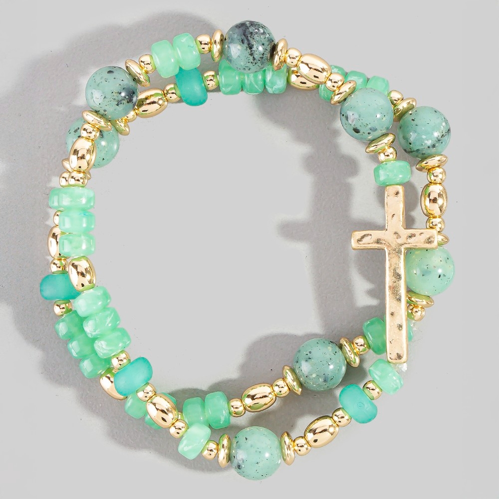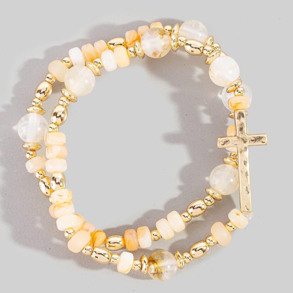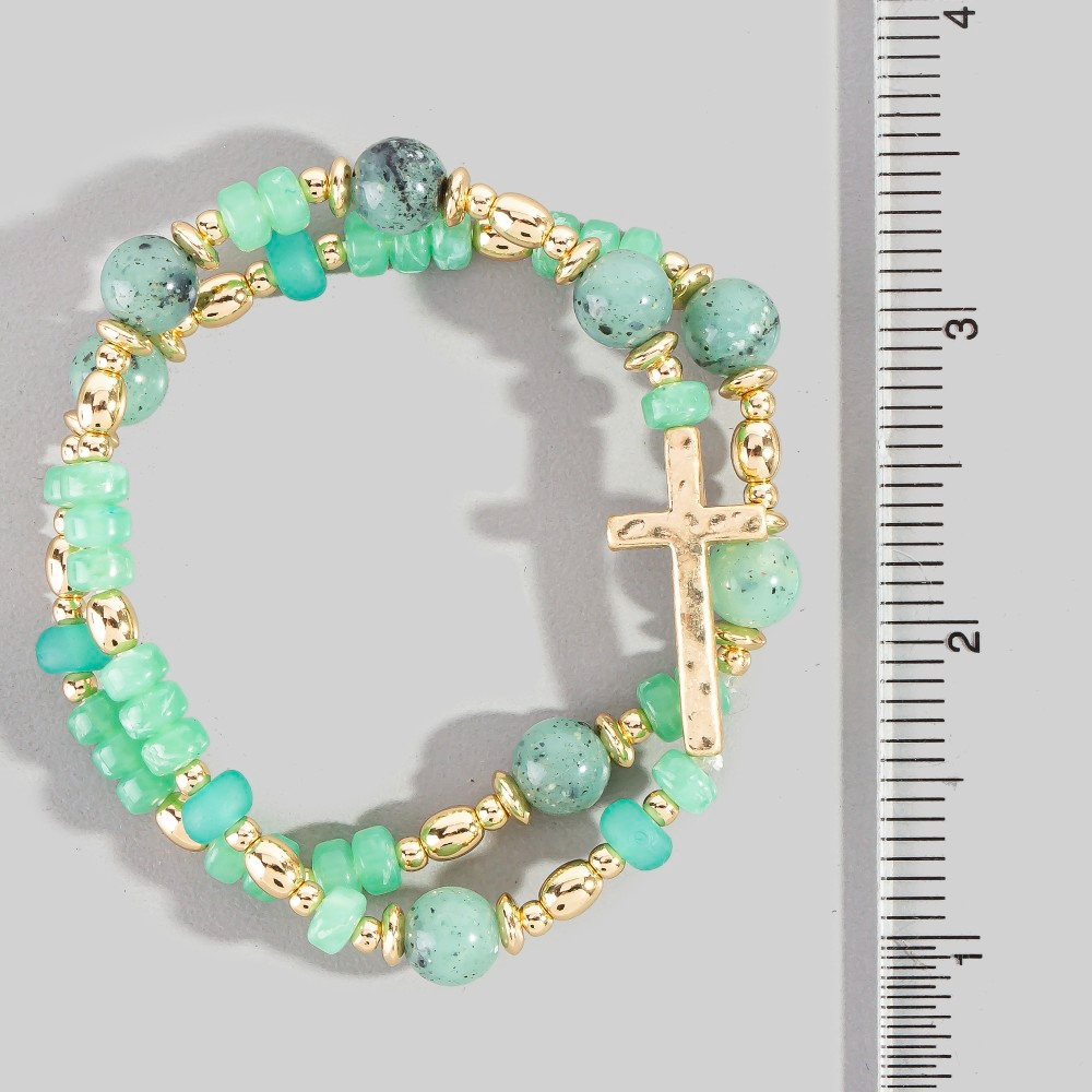 • Effortlessly chic and sophisticated, this bracelet boasts a magnificent cross charm mixed beaded set design. Discover a new level of fashion versatility as this bracelet effortlessly elevates the allure of your attire. Available in LCTWG, LROWG, LSAWG, MALWG. This item is sold in packs of 1.