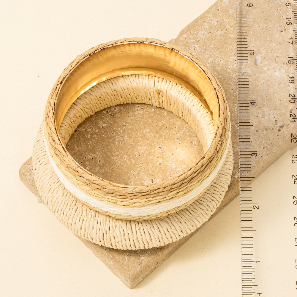 3Pc Mixed Straw Weave Bangle Bracelet Set