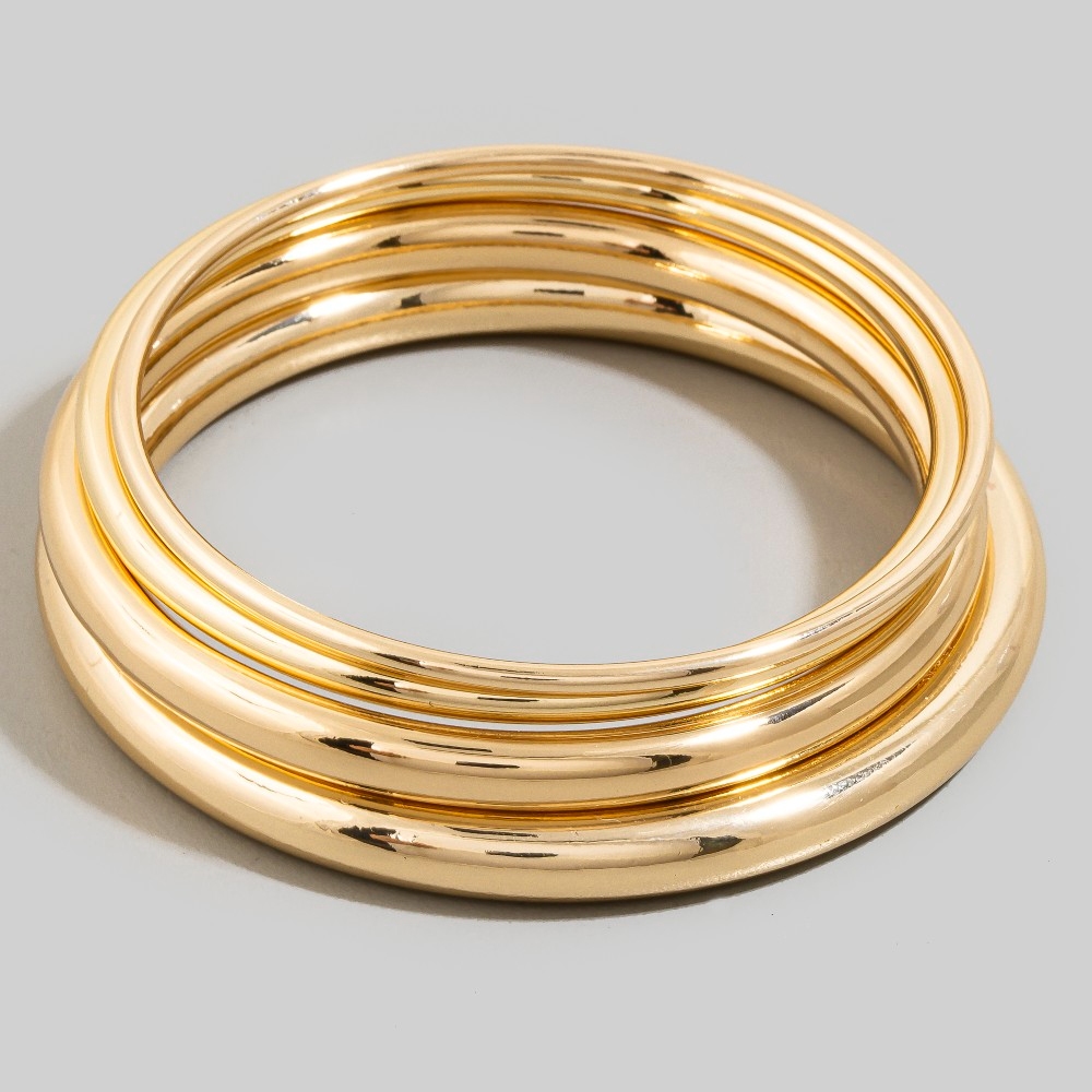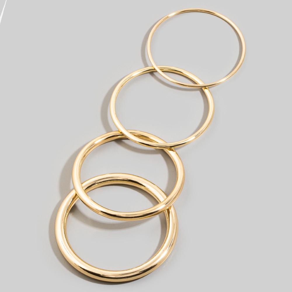 - Perfect for any occasion, from casual to formal, this bangle bracelet incorporates a flawless 4pc mixed metallic set design. Elevate your fashion game with this versatile bangle bracelet, seamlessly integrating into your signature style. Available in GD, RH. This item is sold in packs of 1.