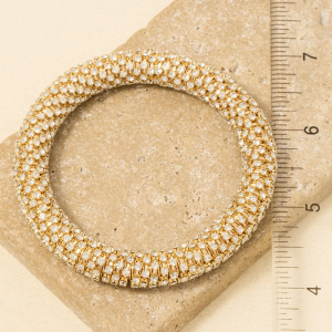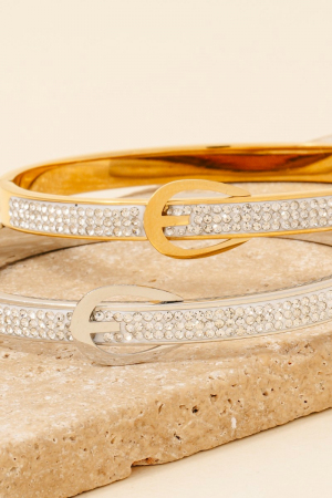 Stainless Steel Pave Belt Style Hinge Bangle Bracelet