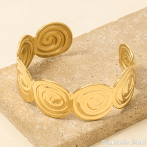 Stainless Steel Coral Pattern Wide Cuff Bracelet