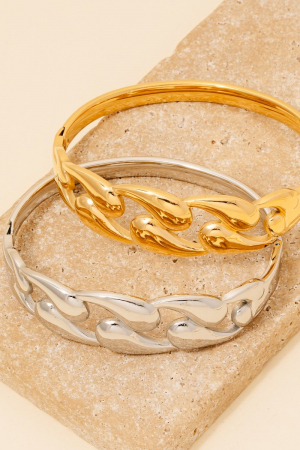 Wavy Rounded Metallic Hinge Bangle Bracelet