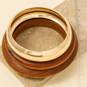3 Piece Wood And Metallic Bangle Bracelet Set