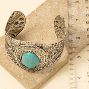 Oval Turquoise Stud Western Engraved Cuff Bracelet