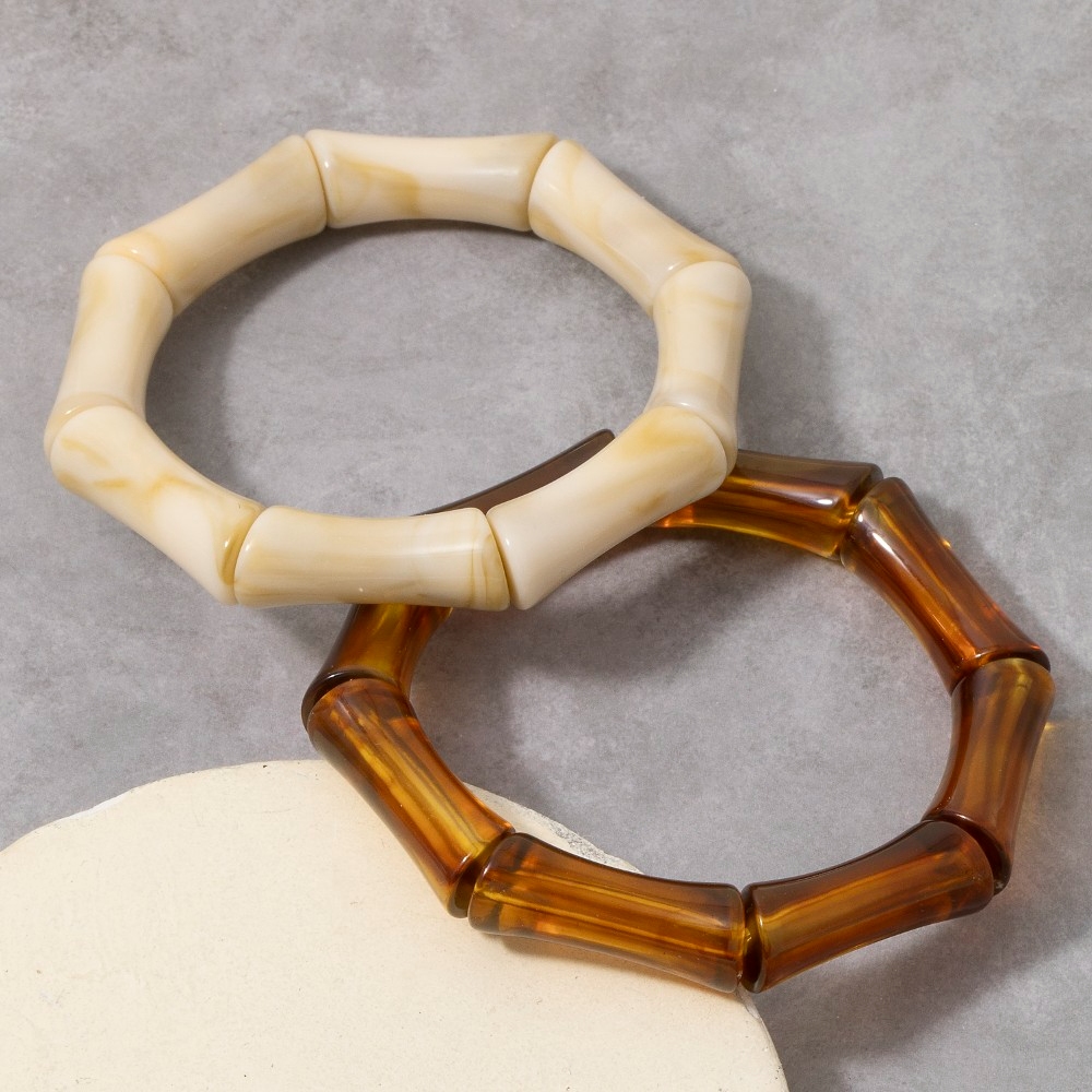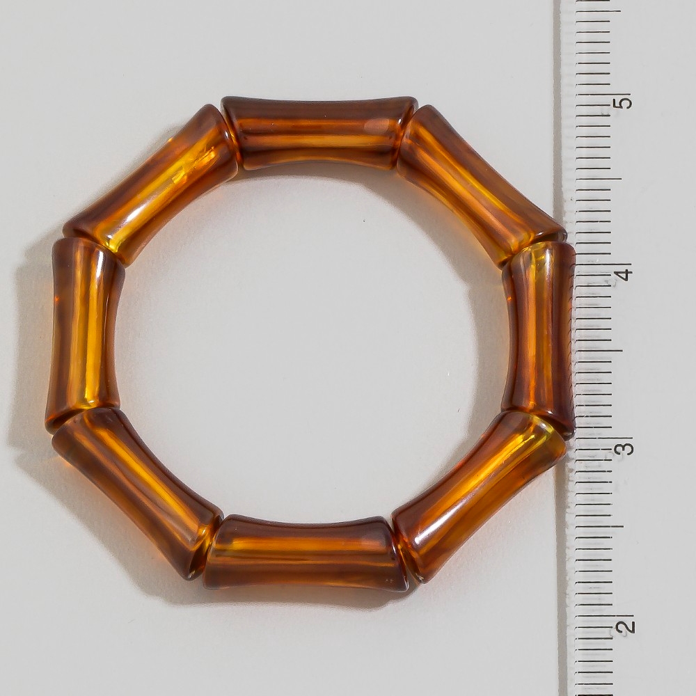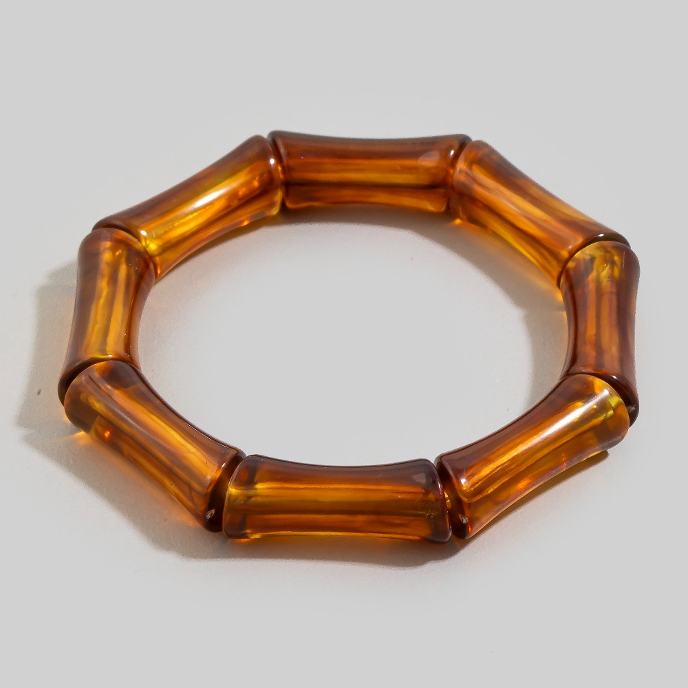• Add a touch of luxury to any outfit, this bracelet carries a charming acrylic bamboo elastic design. Add a dash of sophistication to your look with this versatile bracelet, a must-have for fashion enthusiasts. Available in IVY, TOR. This item is sold in packs of 1.
