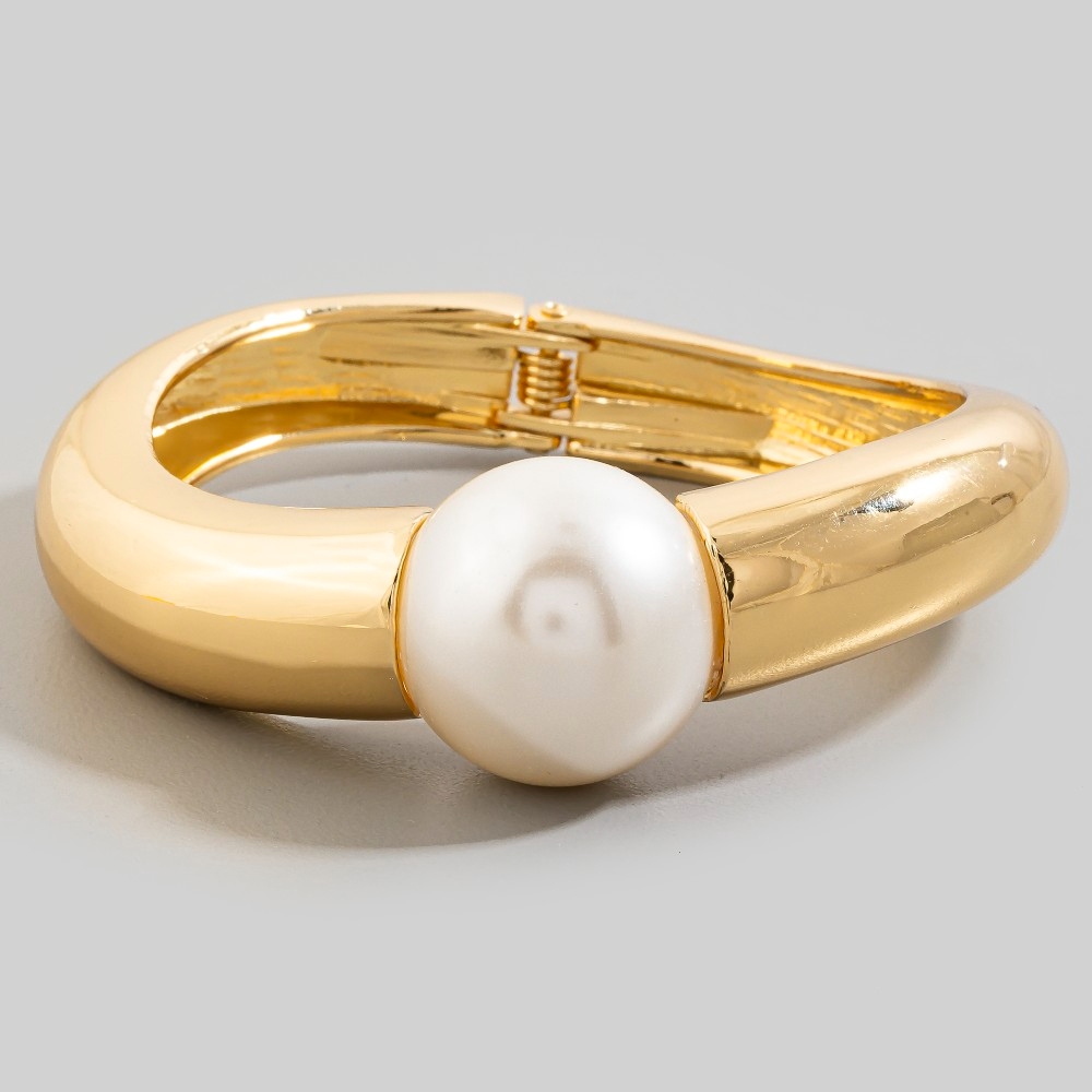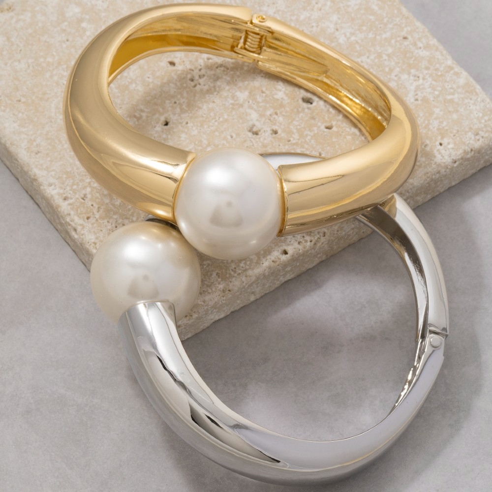 • Add some edge to your look, this bangle bracelet incorporates a flawless bulky pearl bead metal hinged design. Perfect for adding some personality and flair to your wardrobe, this bangle bracelet is a must-have. Available in G, S. This item is sold in packs of 1.