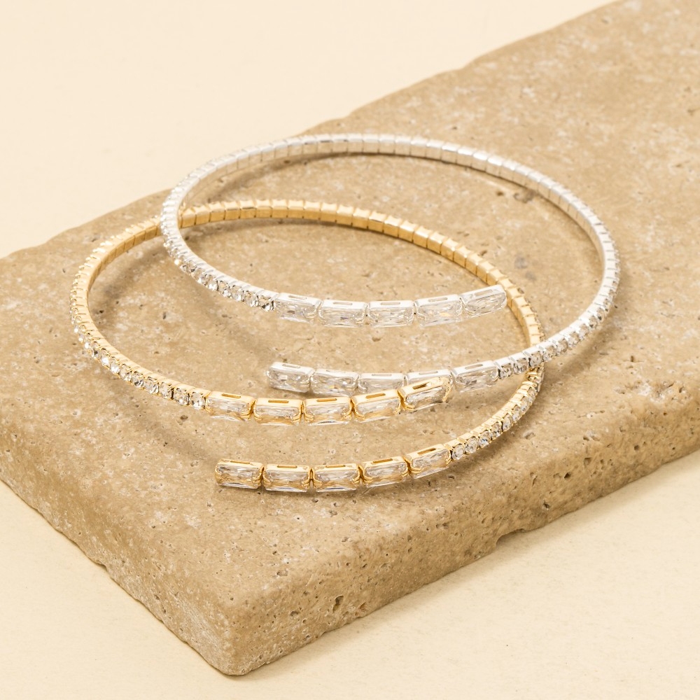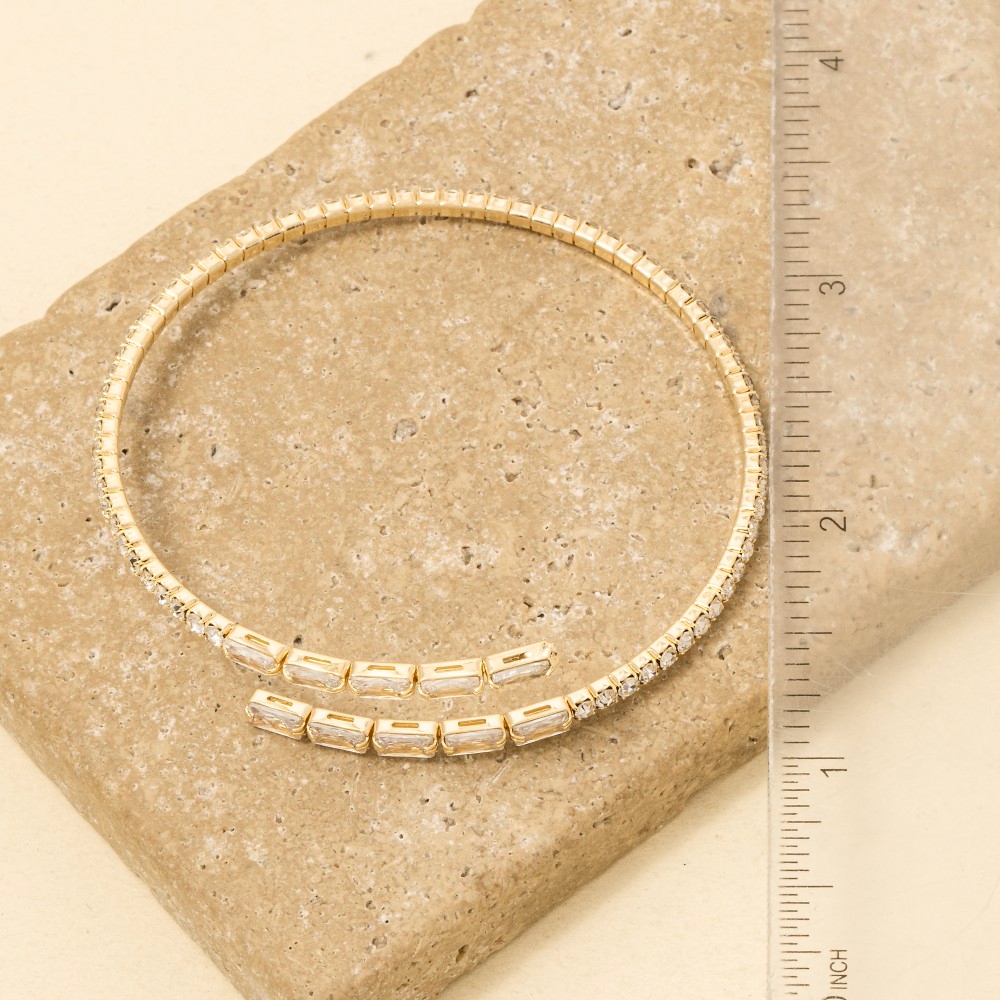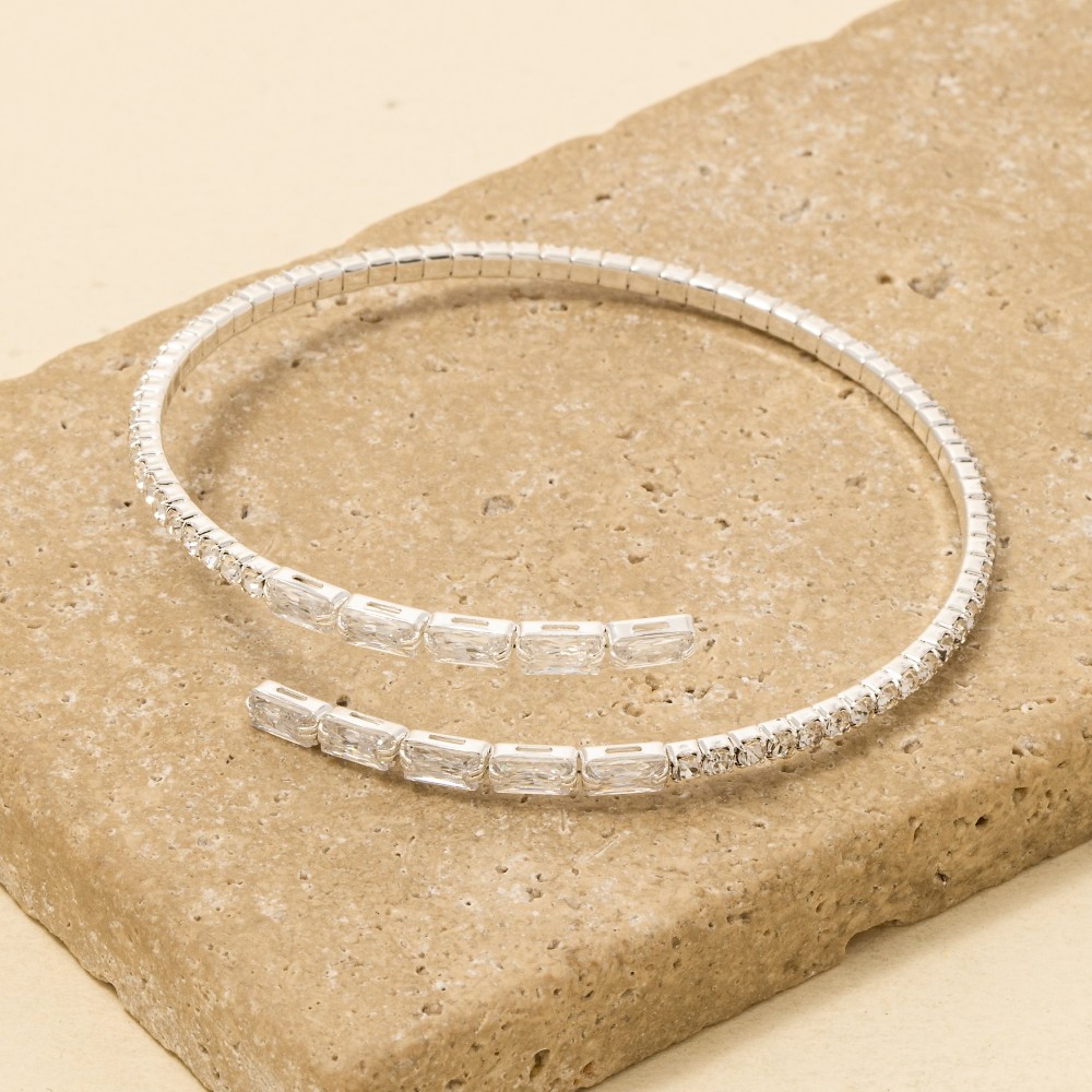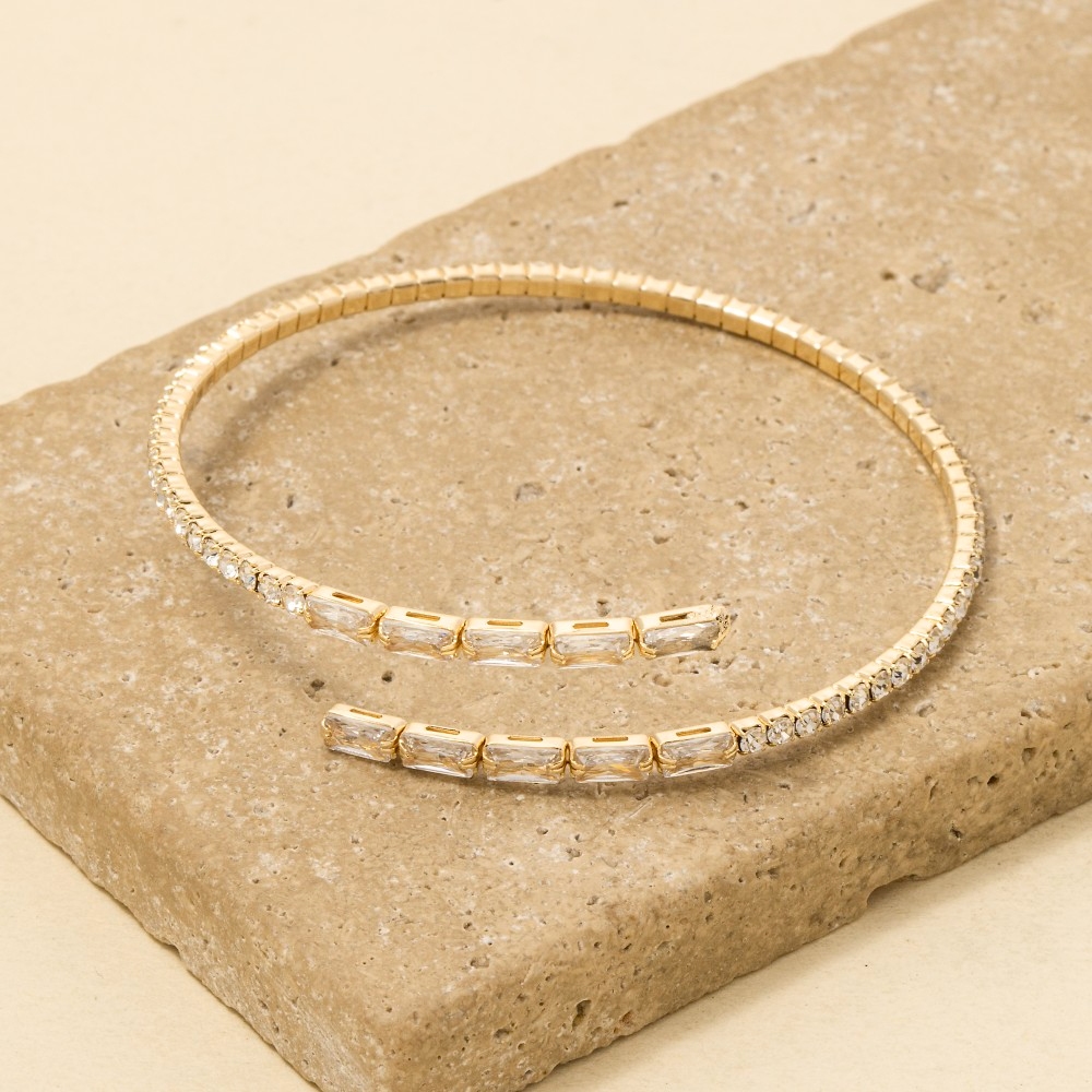 The perfect way to add some sparkle to your outfit, this cuff bracelet incorporates a remarkable cubic zirconia baguette tennis chain design. Discover the magic of accessorizing with this versatile cuff bracelet, effortlessly upgrading the style quotient of any outfit. Available in G, S. This item is sold in packs of 1.