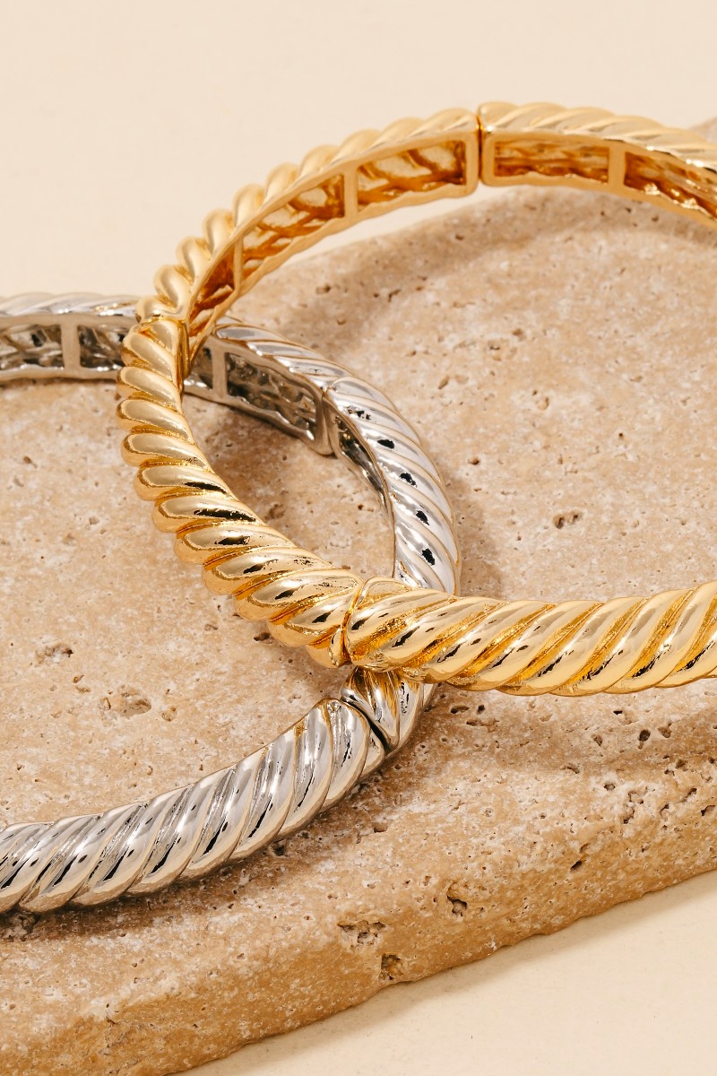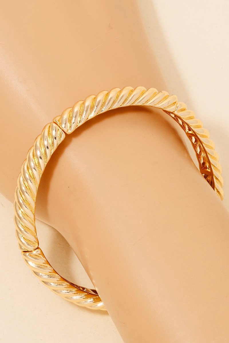 • Effortlessly elevate your style, this bangle bracelet possesses a fine elastic metallic rope texture design. This bangle bracelet is ideal for both casual and formal events, adding a touch of sophistication to any outfit. Available in GD, RH. This item is sold in packs of 1.
