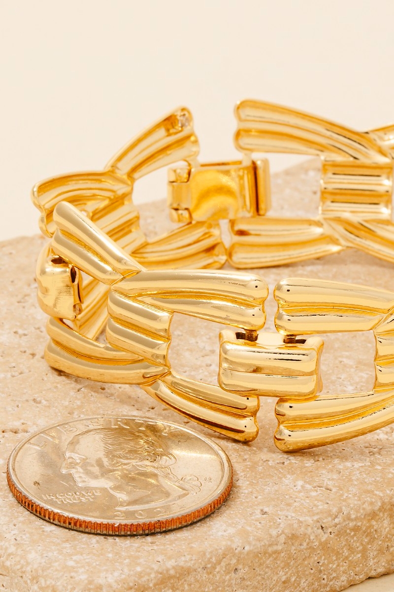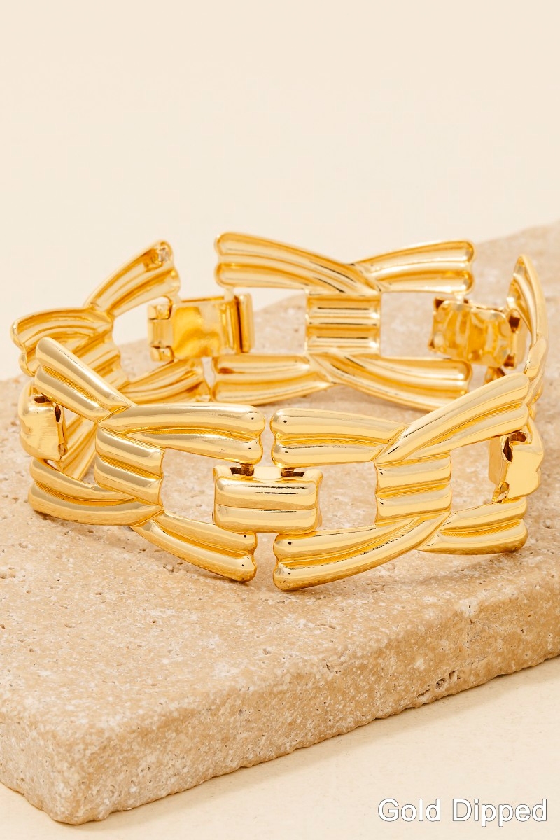 • A versatile and stylish addition to any wardrobe, this chain bracelet encompasses a grand gold dipped wide intricate design. Unleash the charm of this versatile chain bracelet, effortlessly turning any outfit into a fashion statement. This item is sold in packs of 1.