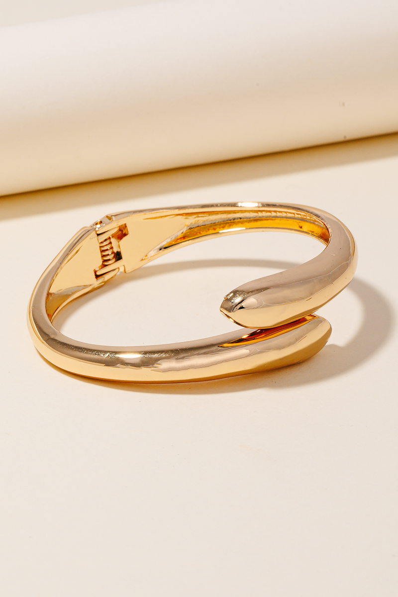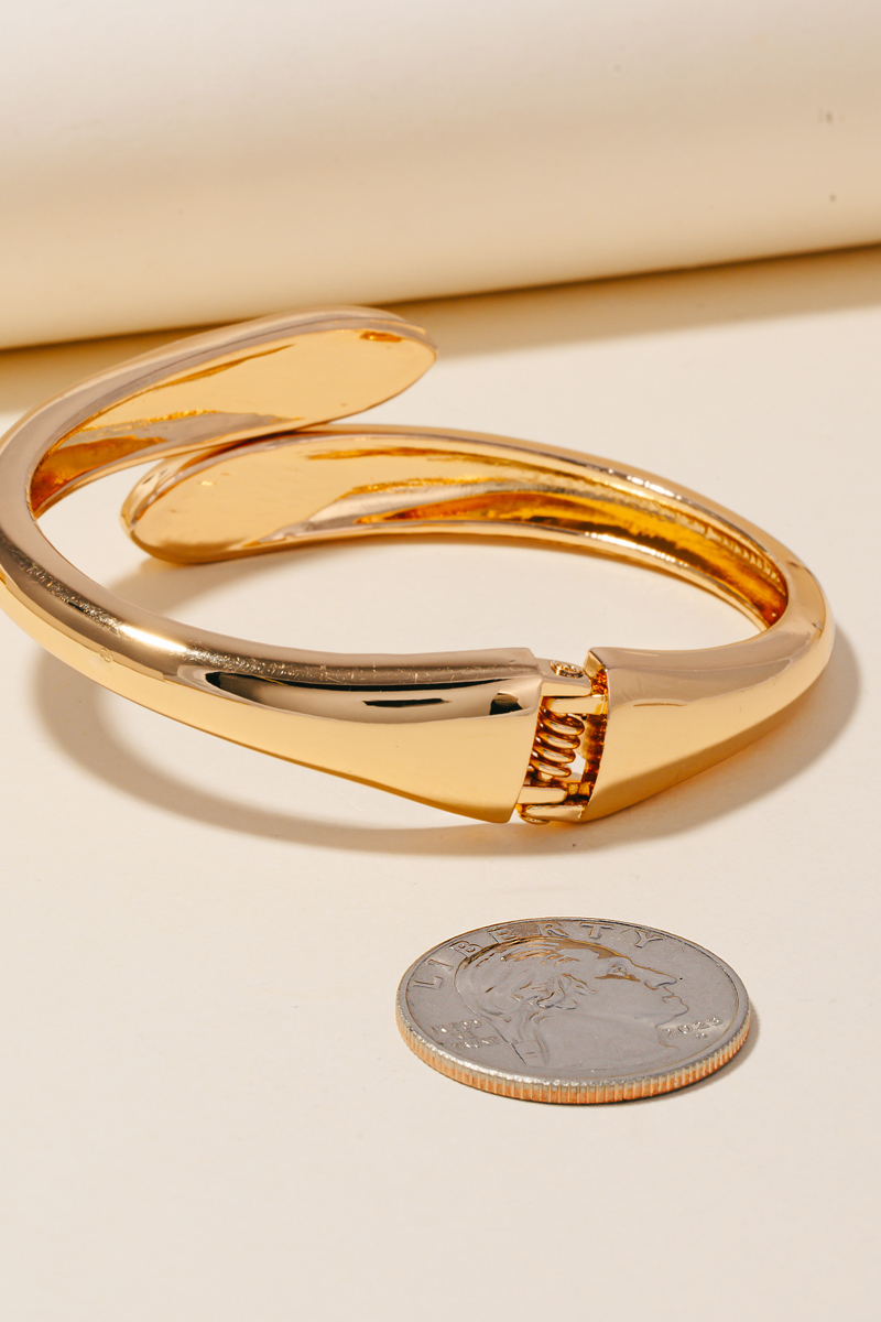 Uniquely designed and endlessly stylish, this bangle bracelet shows off a distinctive hinged metal design. Add a dash of sophistication to your look with this versatile bangle bracelet, a must-have for fashion enthusiasts. This item is sold in packs of 1.