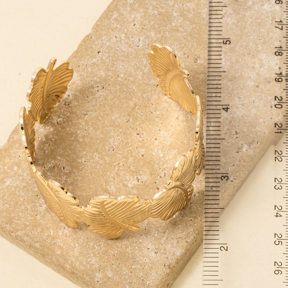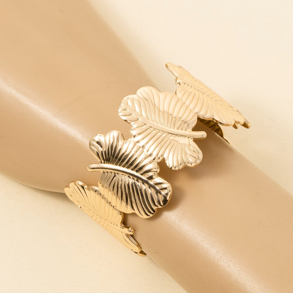 • A must-have addition to any cuff bracelet collection, this cuff bracelet showcases an alluring metallic leaf link design. Elevate your personal style effortlessly with this versatile cuff bracelet, an essential component for a refined wardrobe. Available in G2. This item is sold in packs of 1.