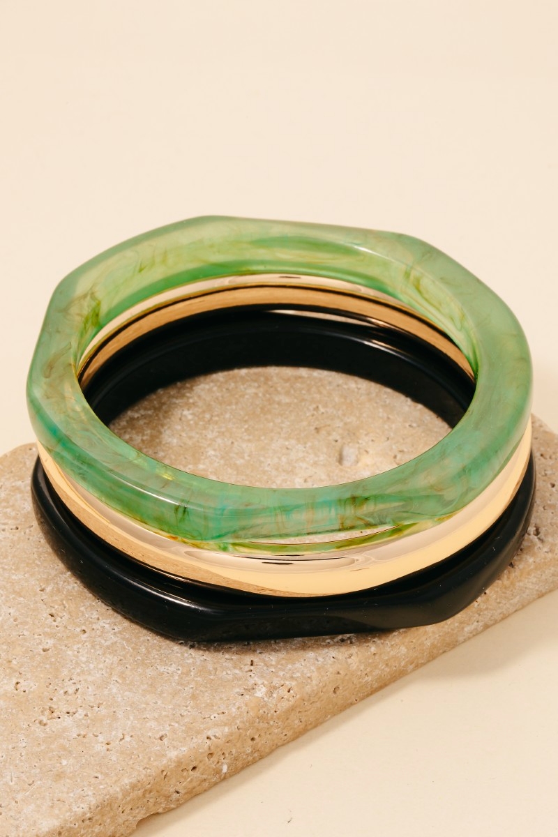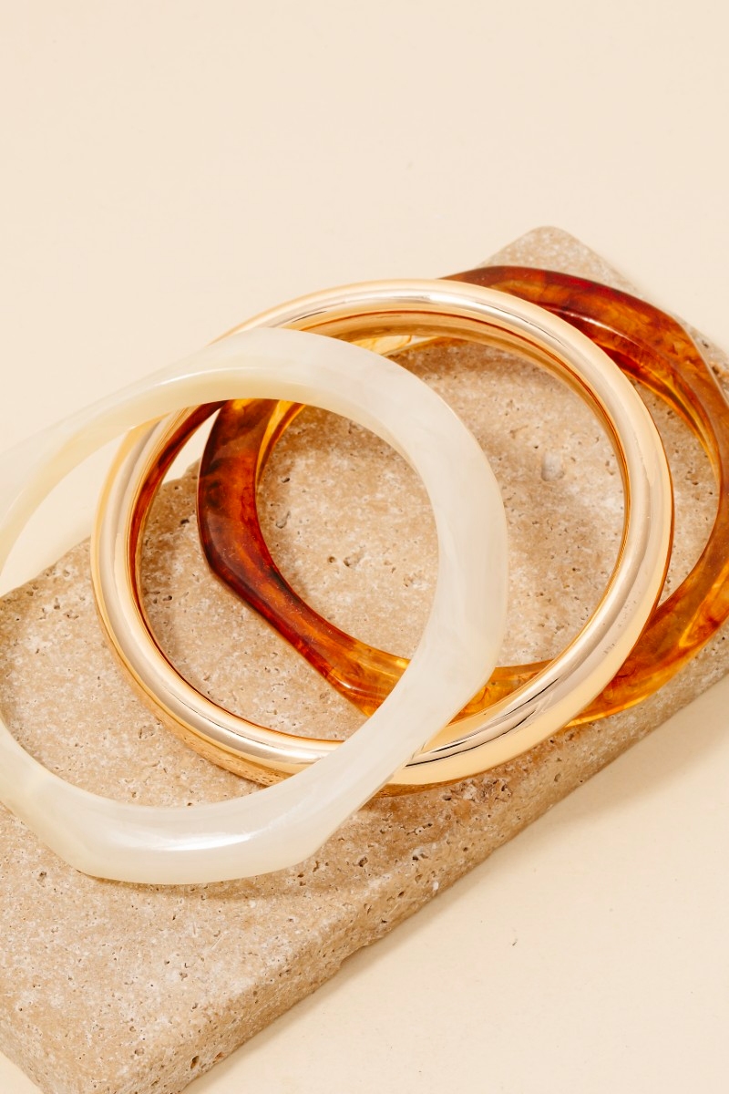 • This bangle bracelet is made with 70% Acetate and 30% Brass.