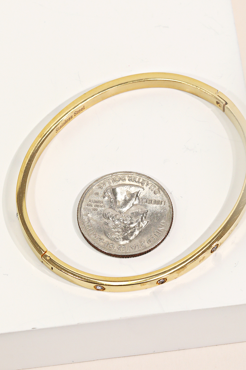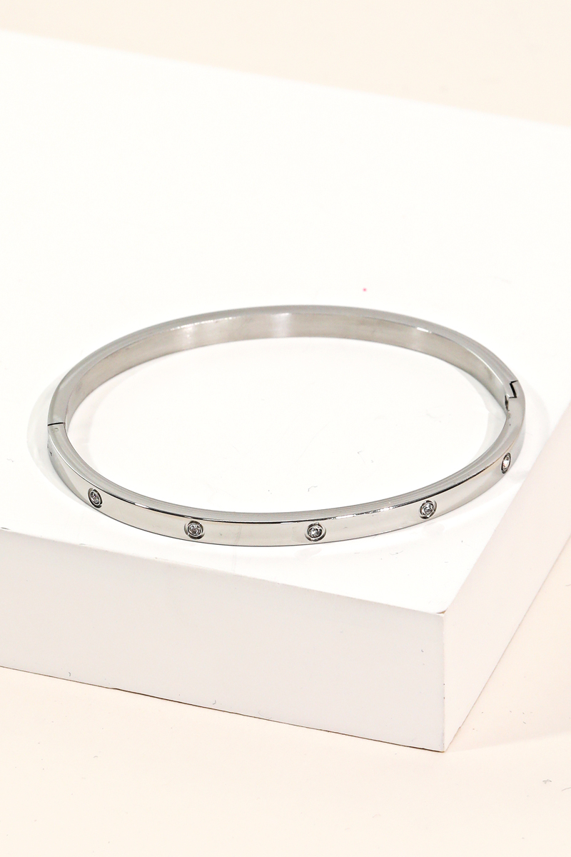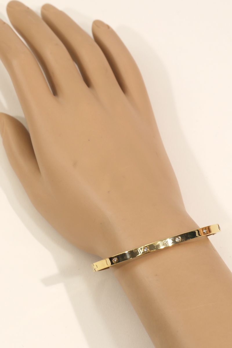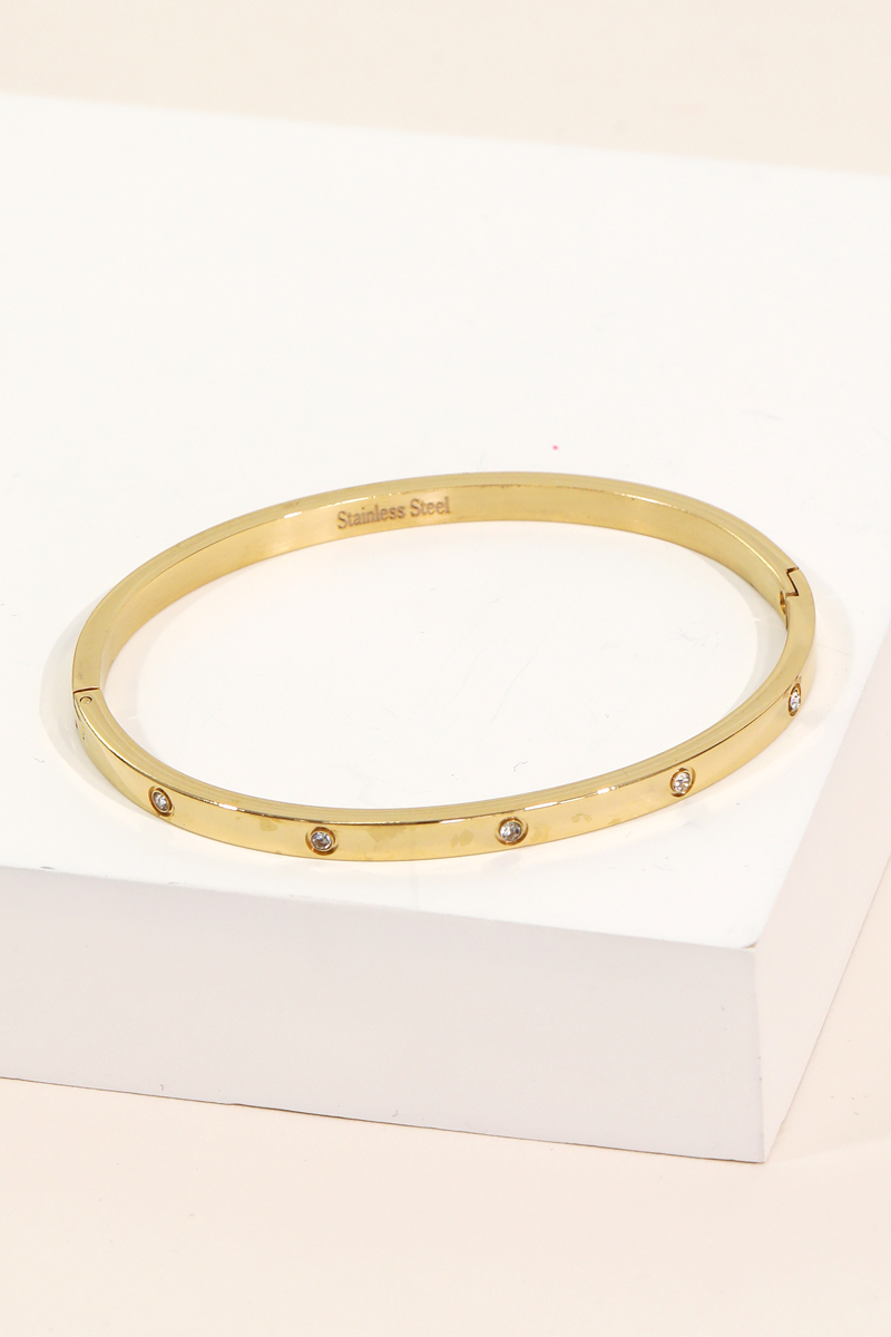 A new must have bangle bracelet created into a gorgeous metallic rhinestone bangle bracelet design. This is an absolute must have for any wardrobe. Available in G and S. This item is sold in packs of 2.