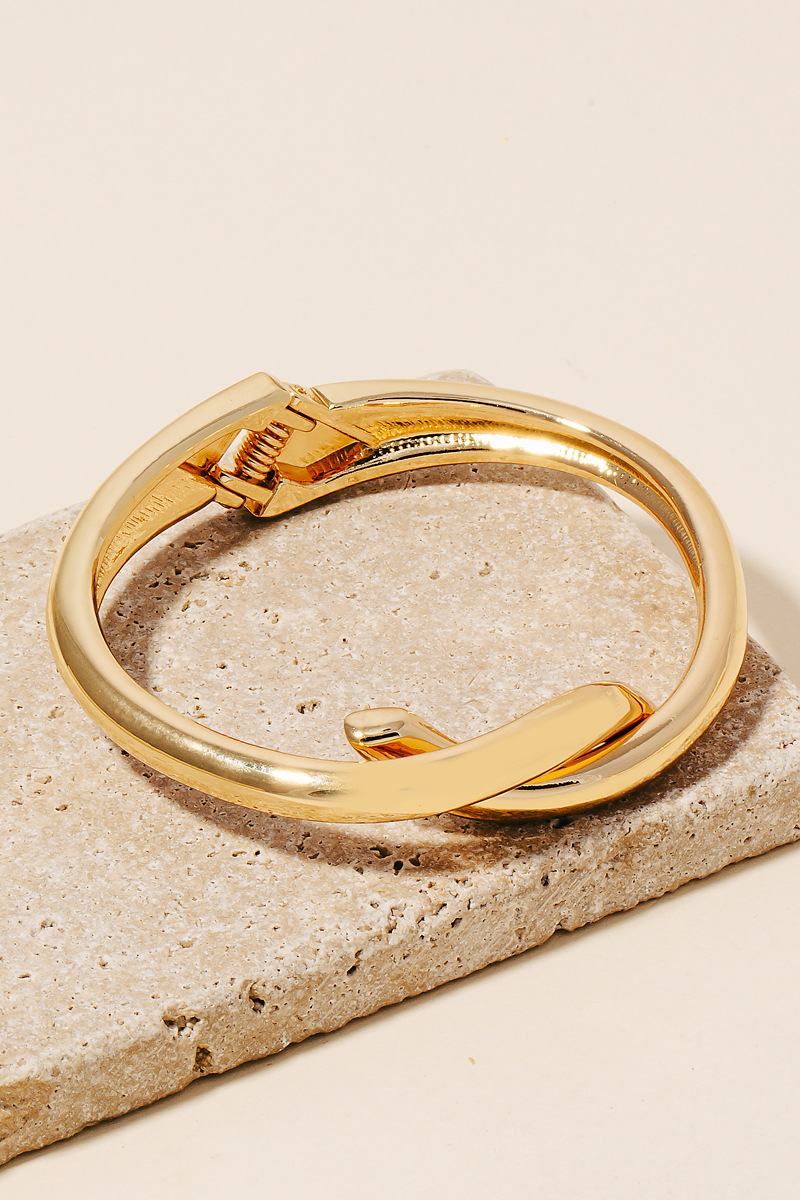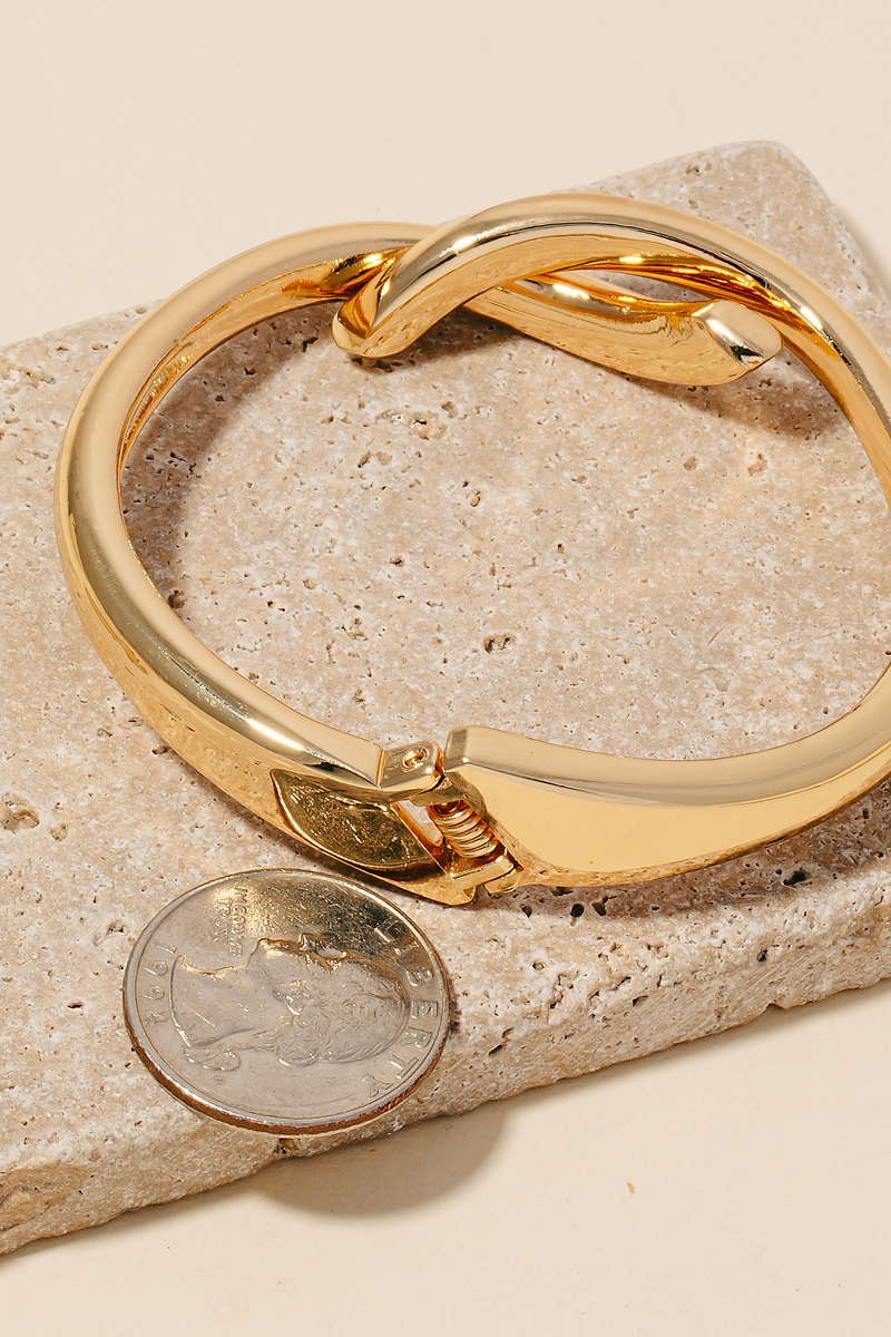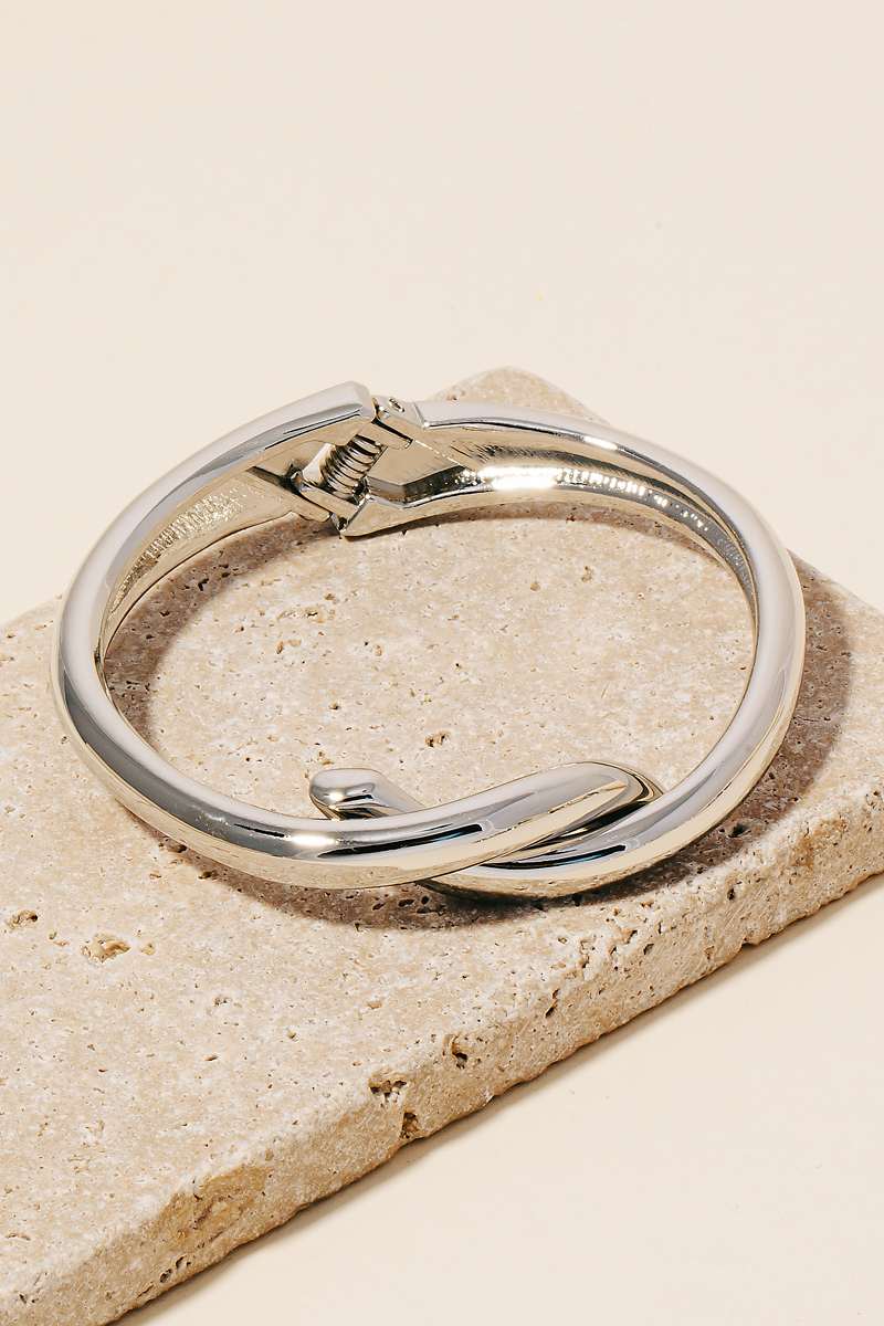 - A unique and stylish piece that sets you apart, this bangle bracelet offers a remarkable metallic twist clasp design. Elevate your fashion game with this versatile bangle bracelet, seamlessly integrating into your signature style. Available in G and S. This item is sold in packs of 1.