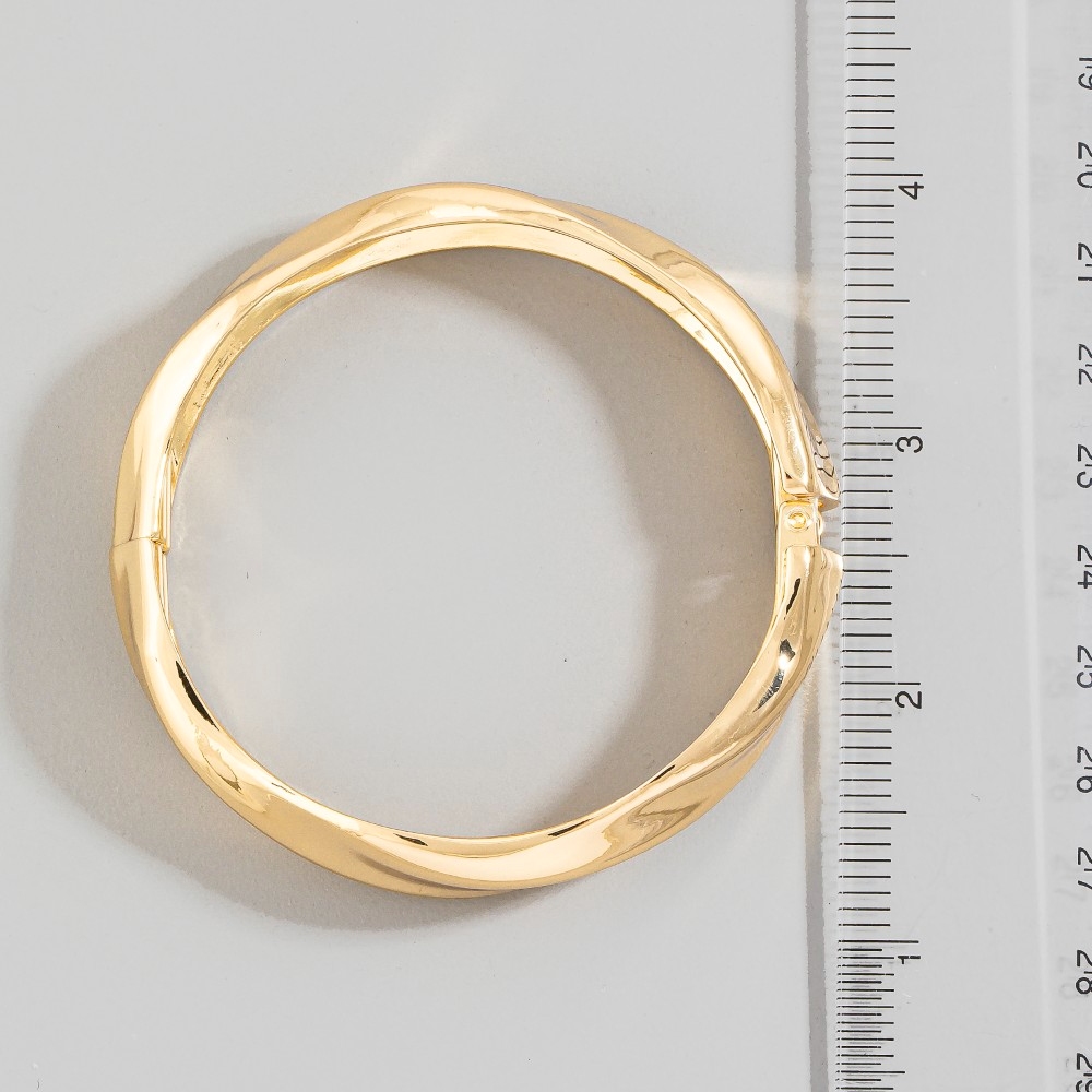 • A modern classic, this bangle bracelet incorporates a flawless metallic twist detail design. Unleash the potential of your wardrobe with this versatile bangle bracelet, ensuring a touch of elegance in every ensemble. Available in G, S. This item is sold in packs of 1.
