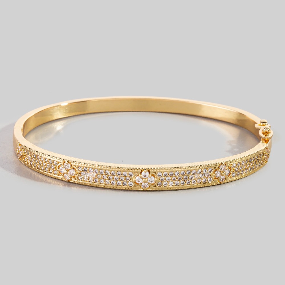 • This bangle bracelet is made with 85% Brass and 15% Cubic Zirconia.