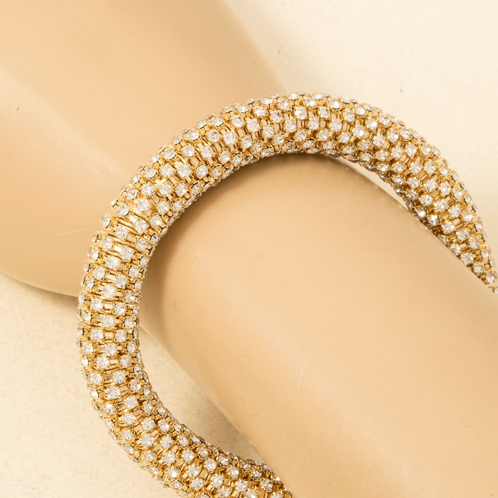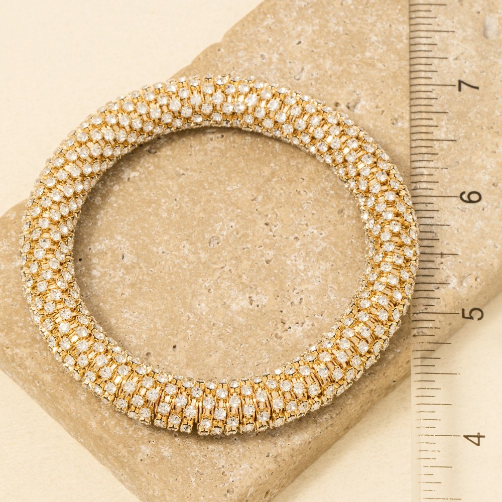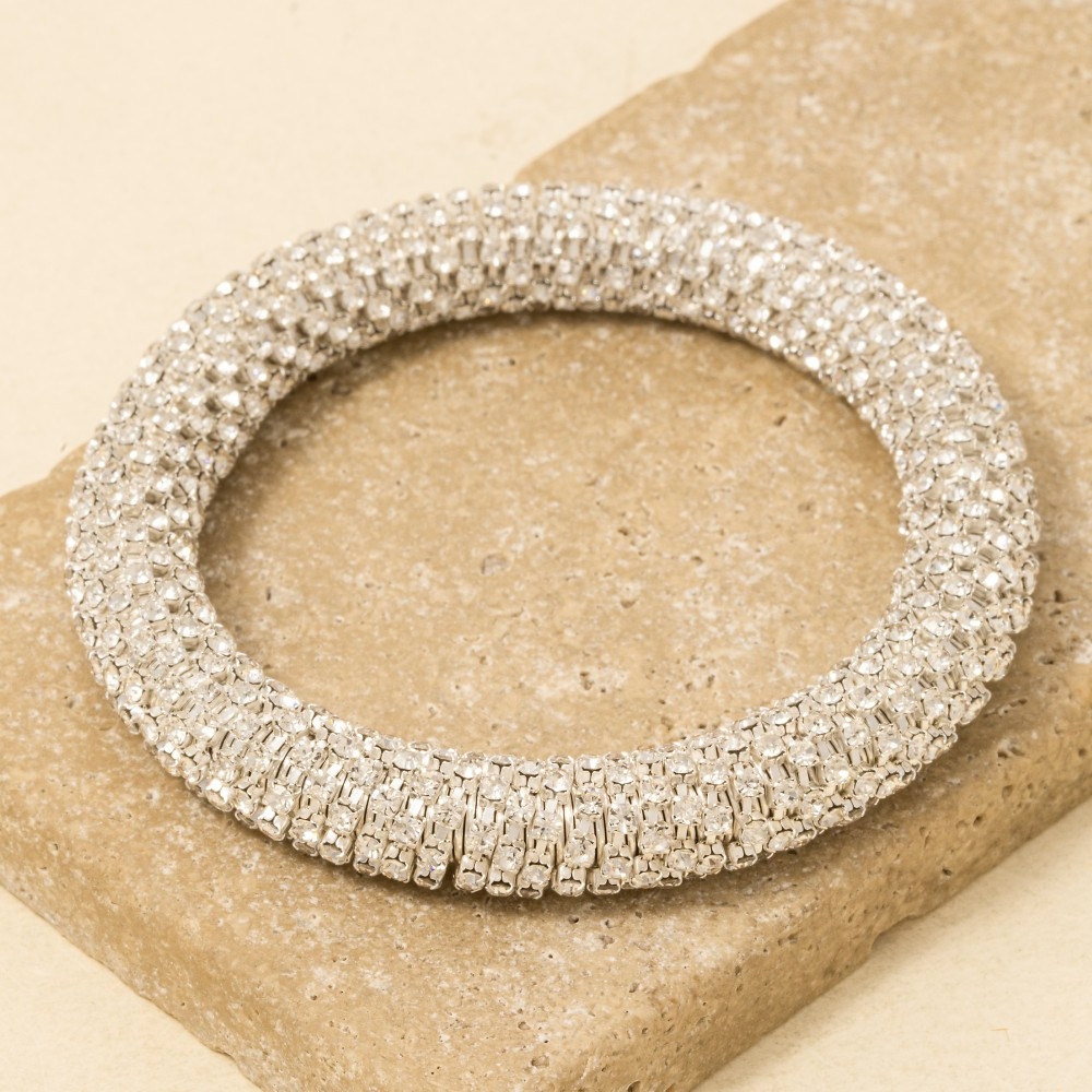 • A unique and stylish piece that sets you apart, this bangle bracelet highlights a special pave elastic snake chain design. Transform your outfit from ordinary to extraordinary with the touch of elegance provided by this versatile bangle bracelet. Available in G, S. This item is sold in packs of 1.