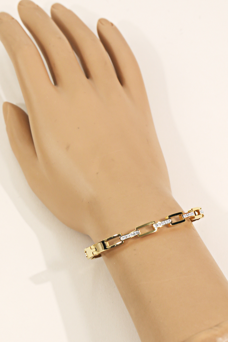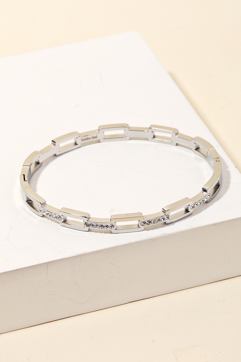 This is a soon to be trending bangle bracelet that features a pave rectangle chain link bangle bracelet design. Perfect for the Spring season! Available in G. This item is sold in packs of 1.