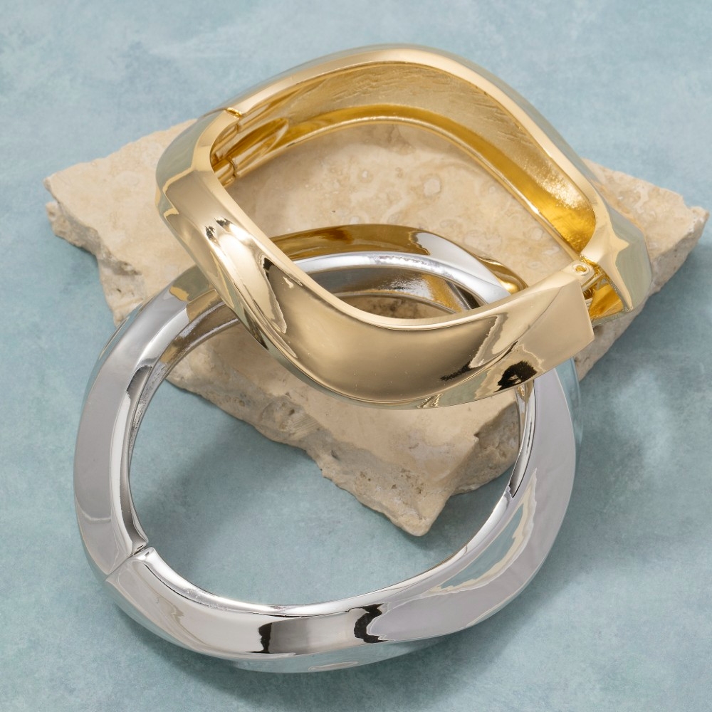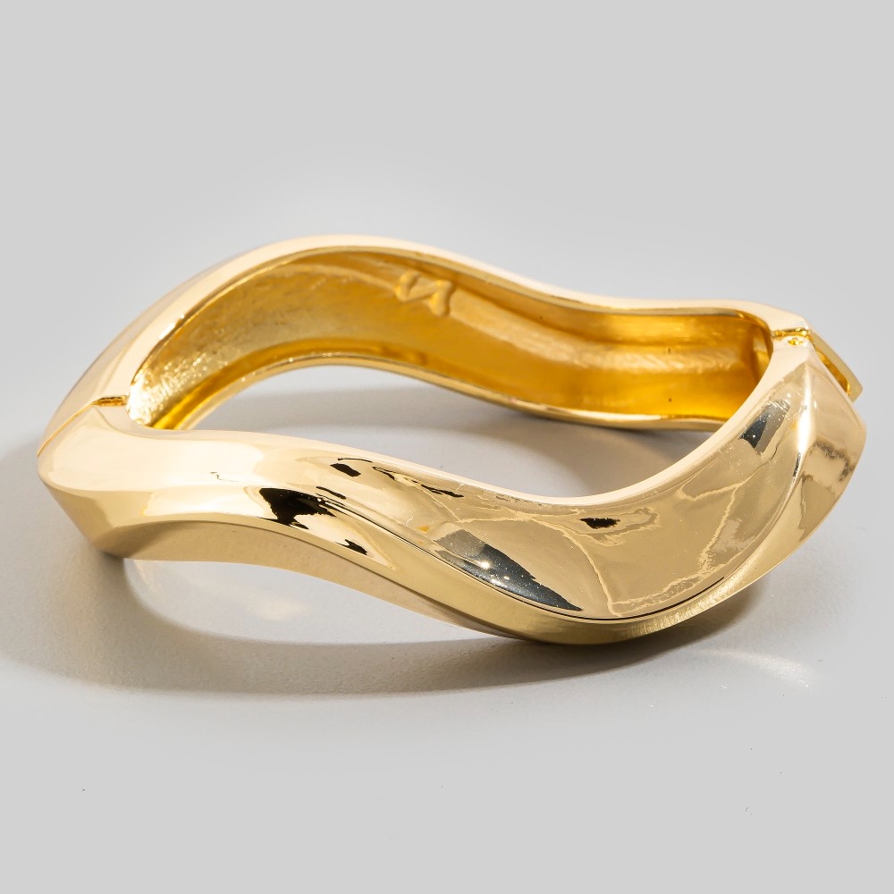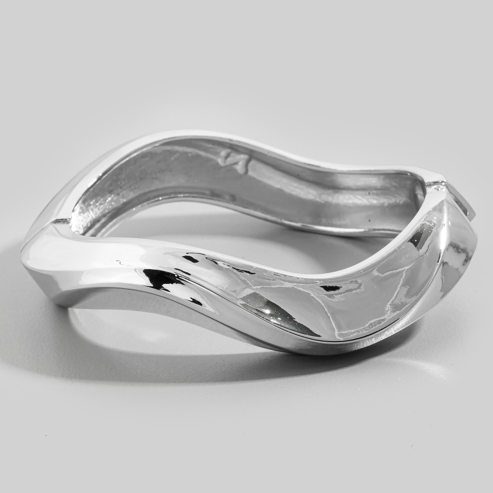 Sleek and modern, this bangle bracelet showcases a breathtaking polished metal wave design. This bangle bracelet is the perfect way to add a touch of elegance to any outfit. Available in G, S. This item is sold in packs of 1.