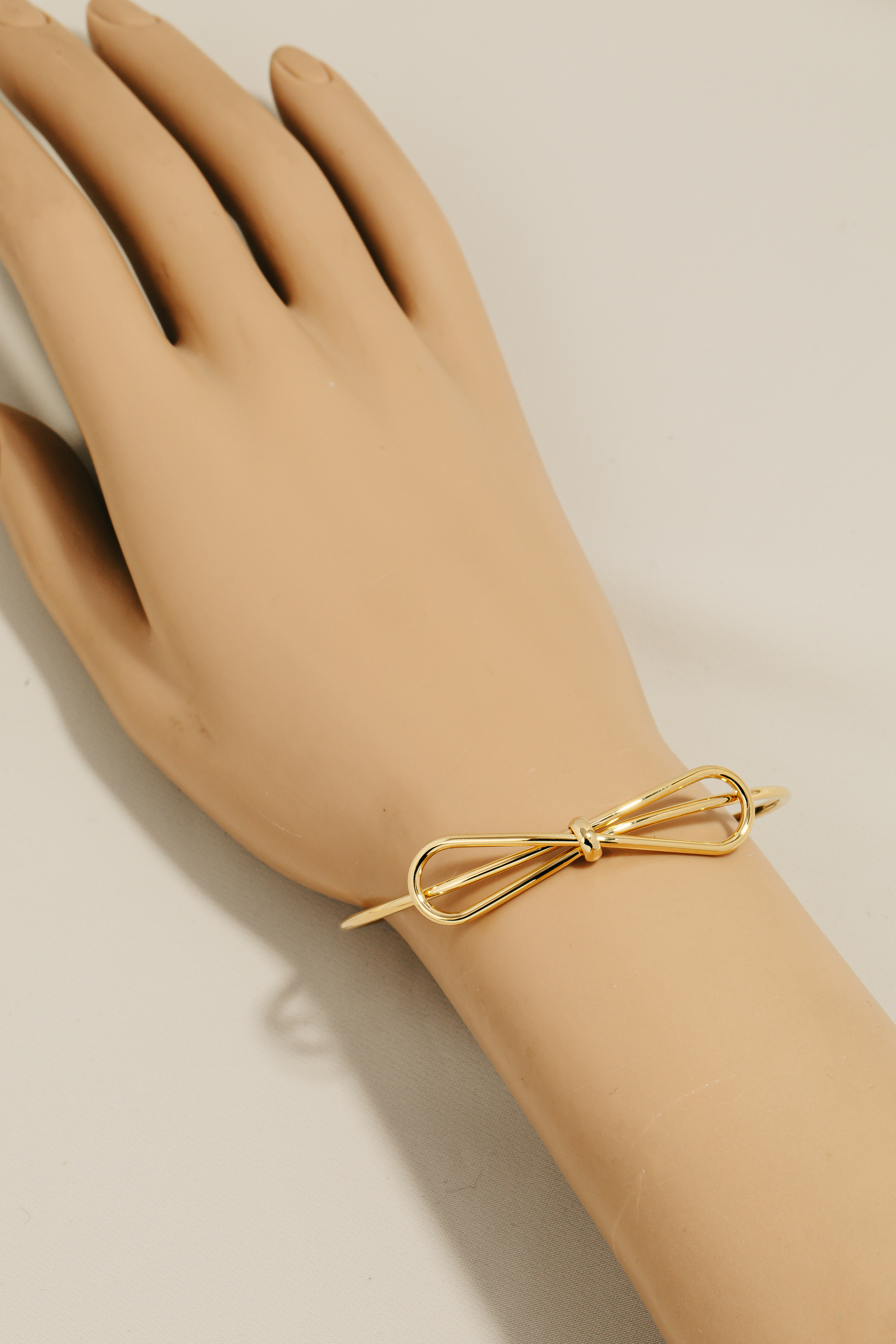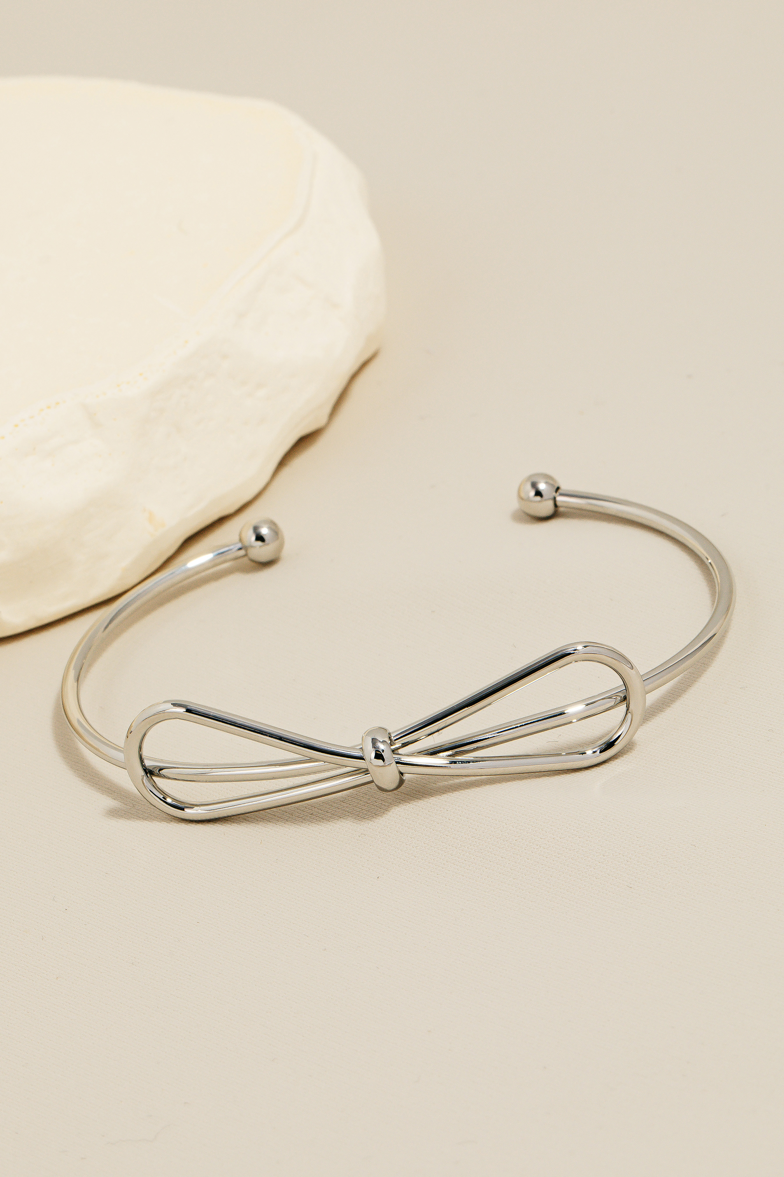 A timeless piece that you'll wear for years to come, this cuff bracelet highlights a special ribbon bow metallic design. A perfect addition to your wardrobe that effortlessly enhances your style. Available in G and S. This item is sold in packs of 1.