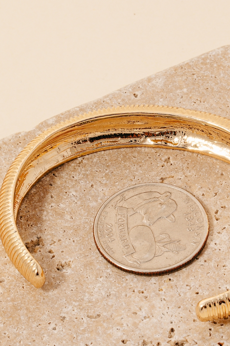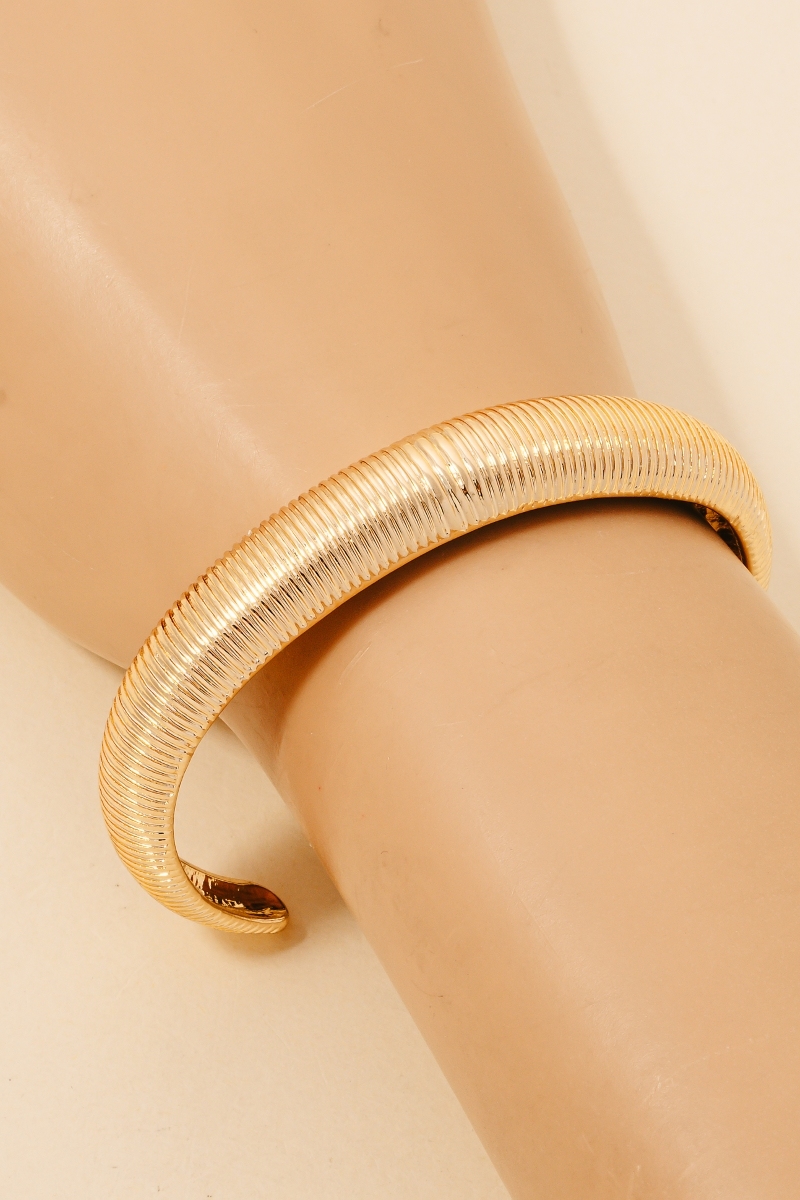 A modern classic, this cuff bracelet evokes a captivating ridged metallic design. The perfect way to elevate any outfit, this cuff bracelet adds a touch of elegance and style. Available in G2. This item is sold in packs of 1.