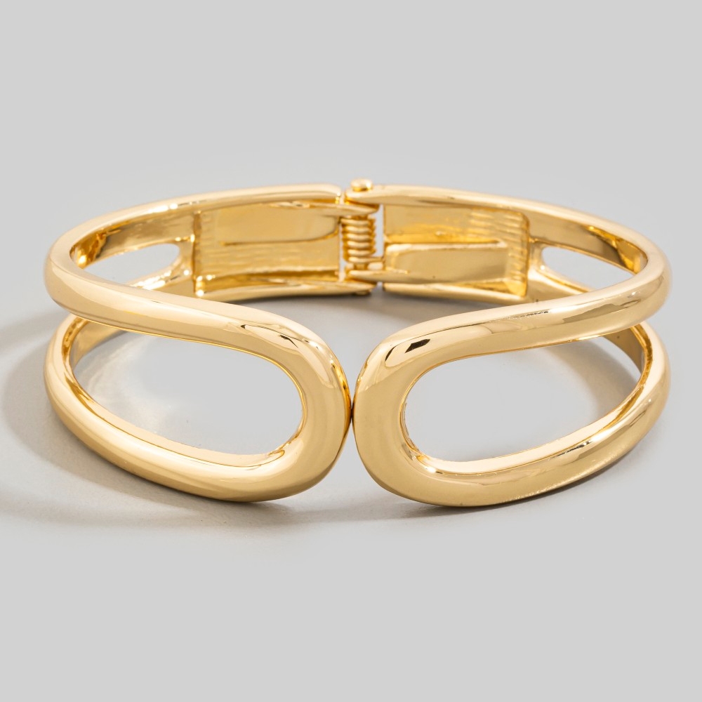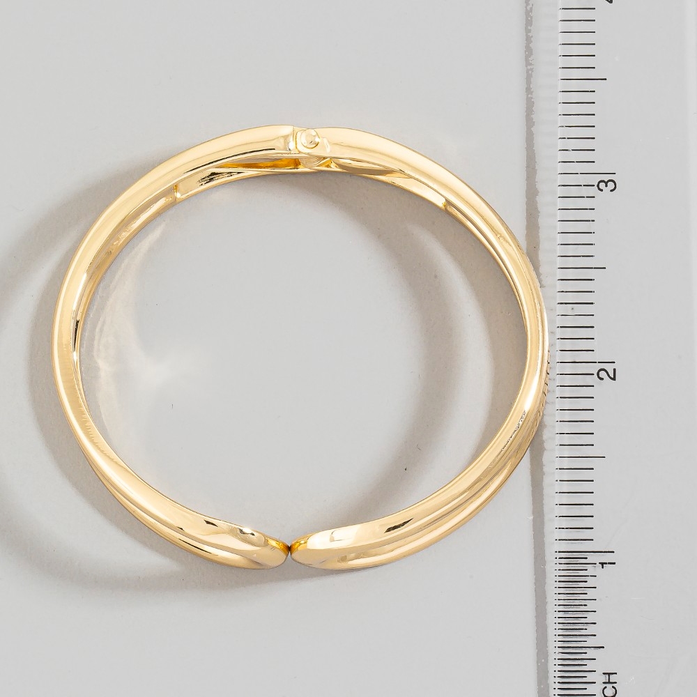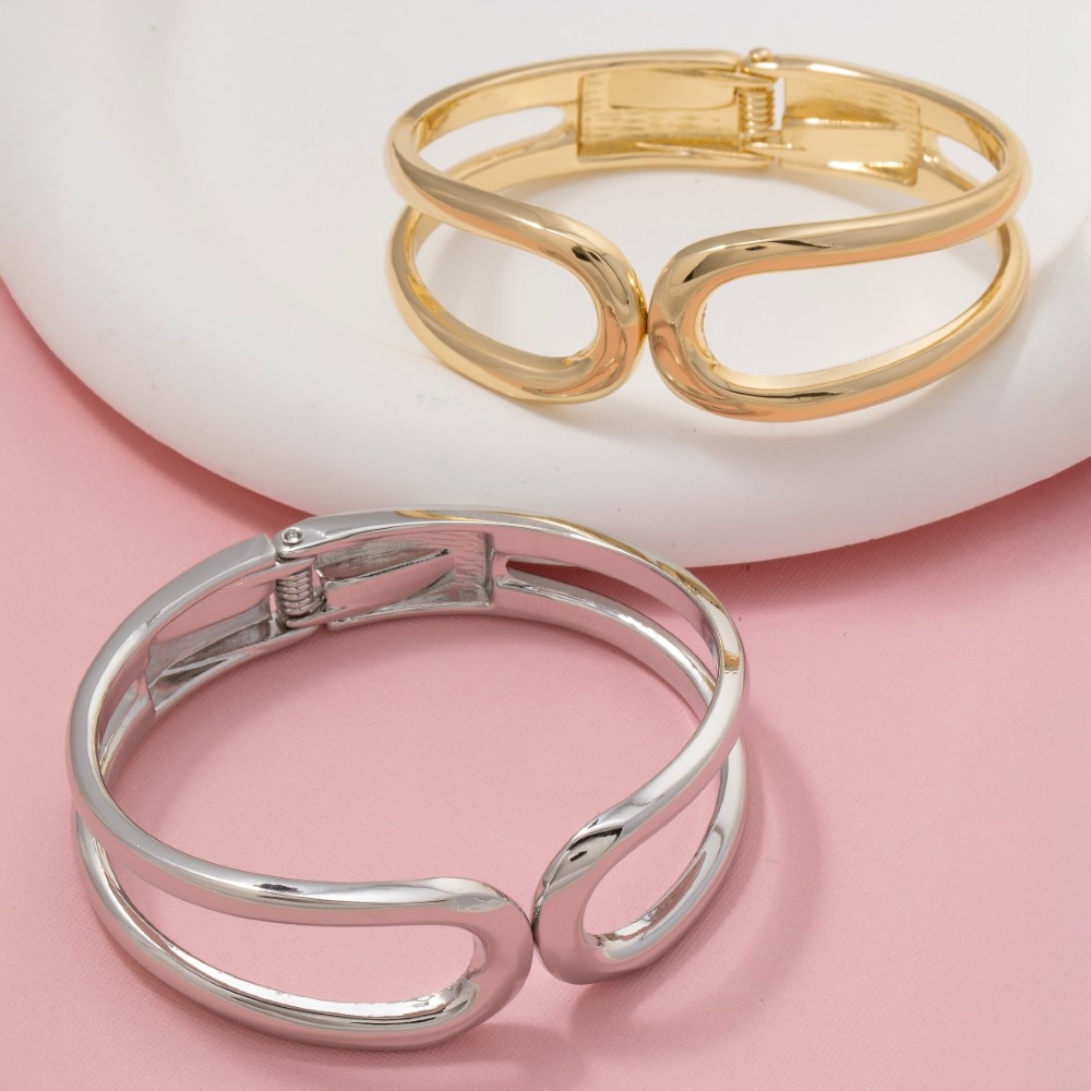 A true work of art, this bangle bracelet emanates an elegant sculpted metal infinity hinged design. Unleash the power of style with this versatile bangle bracelet, perfect for enhancing the charm of your wardrobe. Available in G, S. This item is sold in packs of 1.