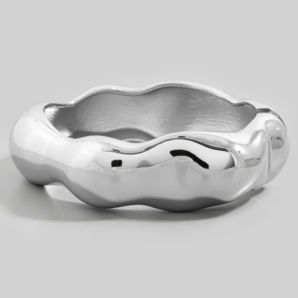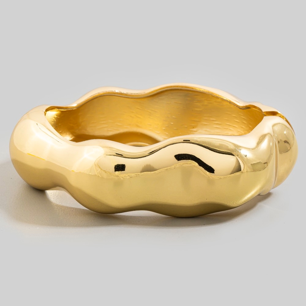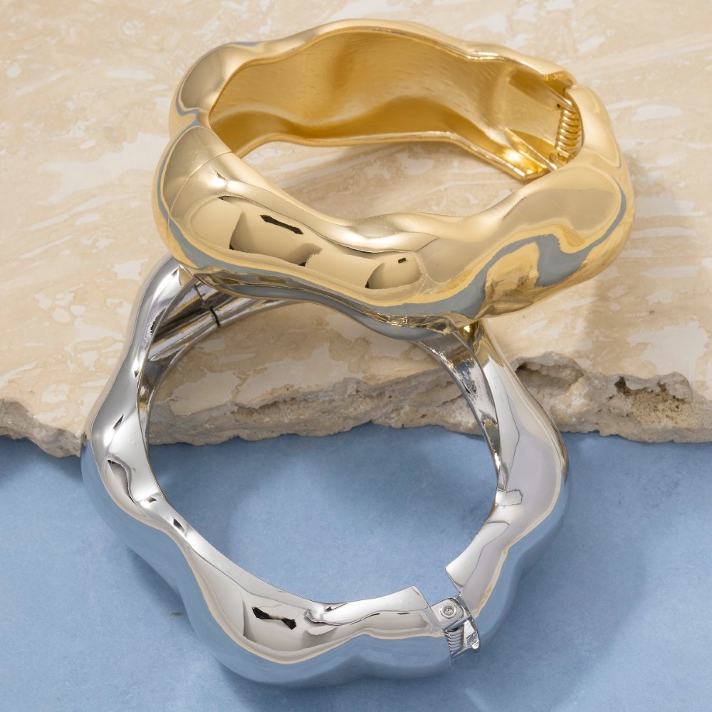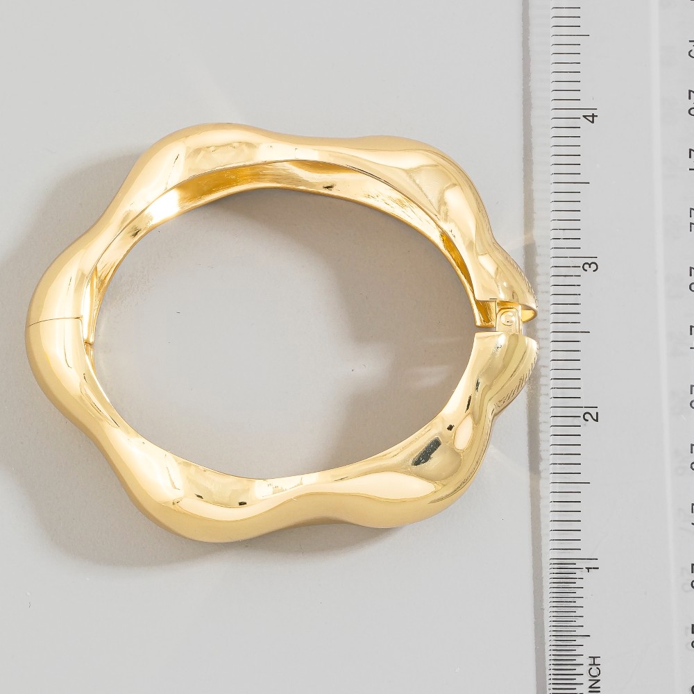 - Elevate any look, this bangle bracelet incorporates a remarkable sculpted wave hinged design. Experience the transformative power of this versatile bangle bracelet, effortlessly enhancing the overall aesthetic of your outfit. Available in G, S. This item is sold in packs of 1.