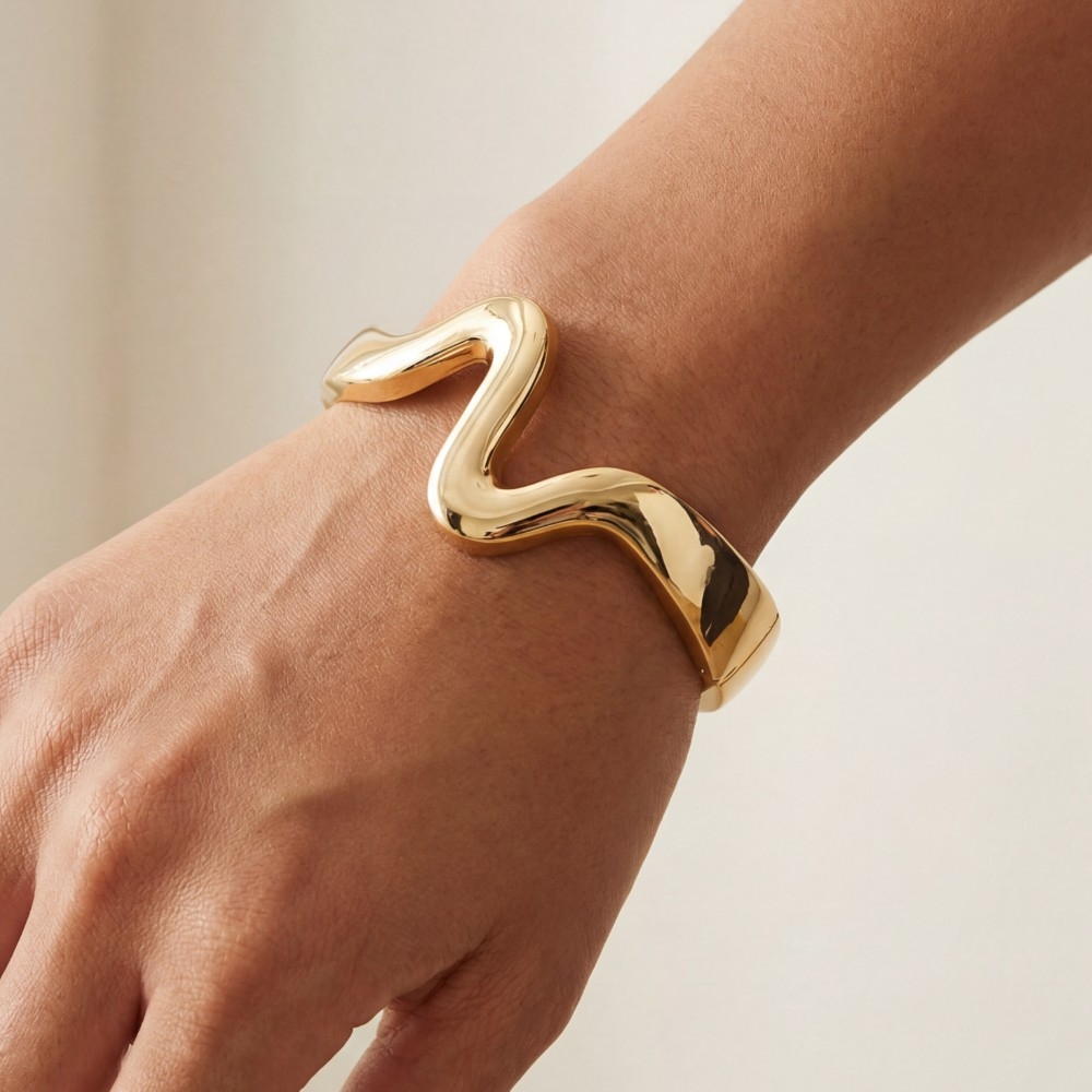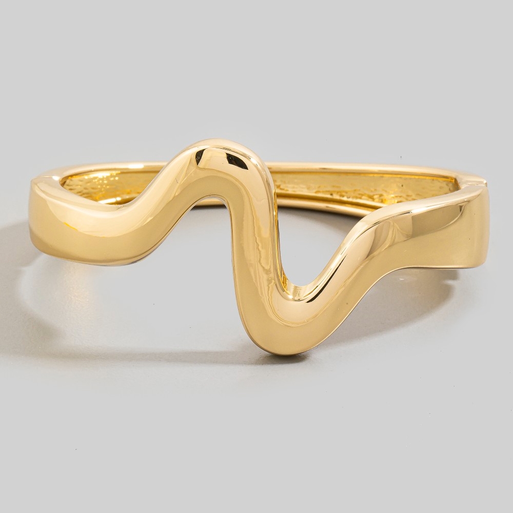 The perfect way to elevate any outfit, this bangle bracelet showcases an alluring sculptural wave statement design. This bangle bracelet is a great way to add some glamour and sophistication to your outfit. Available in G, S. This item is sold in packs of 1.