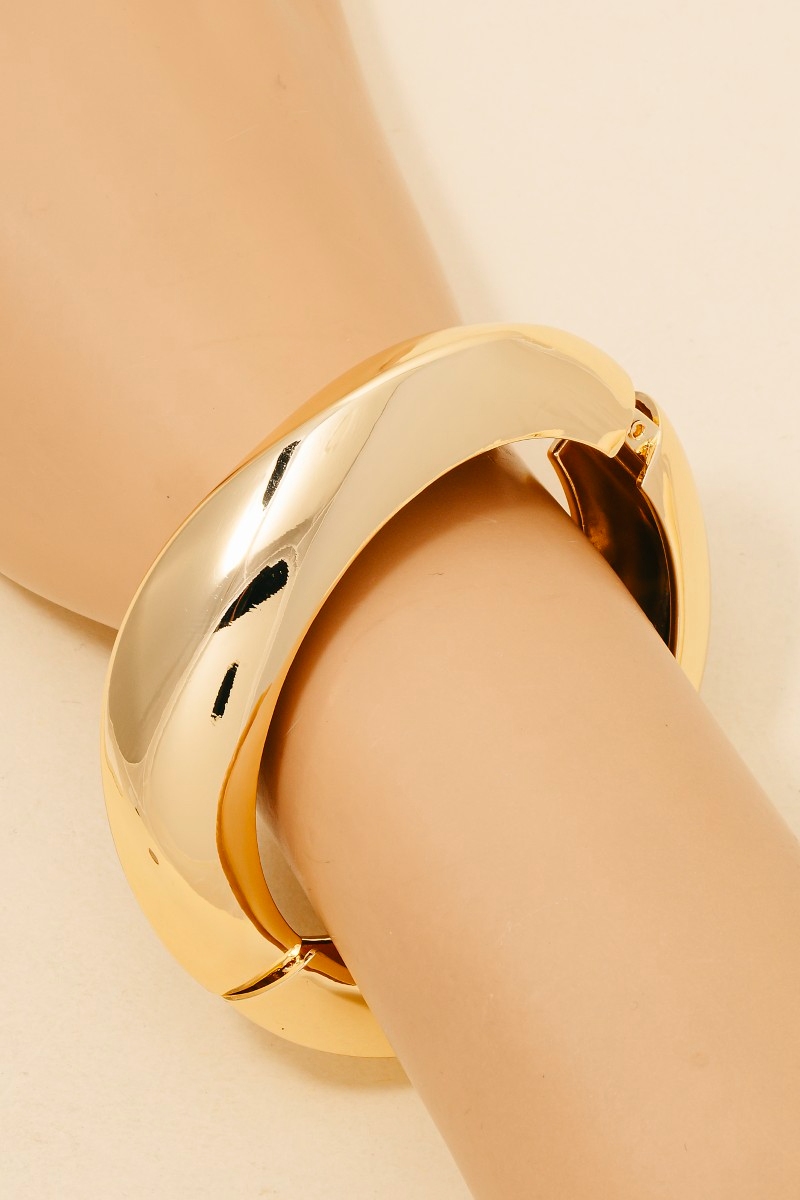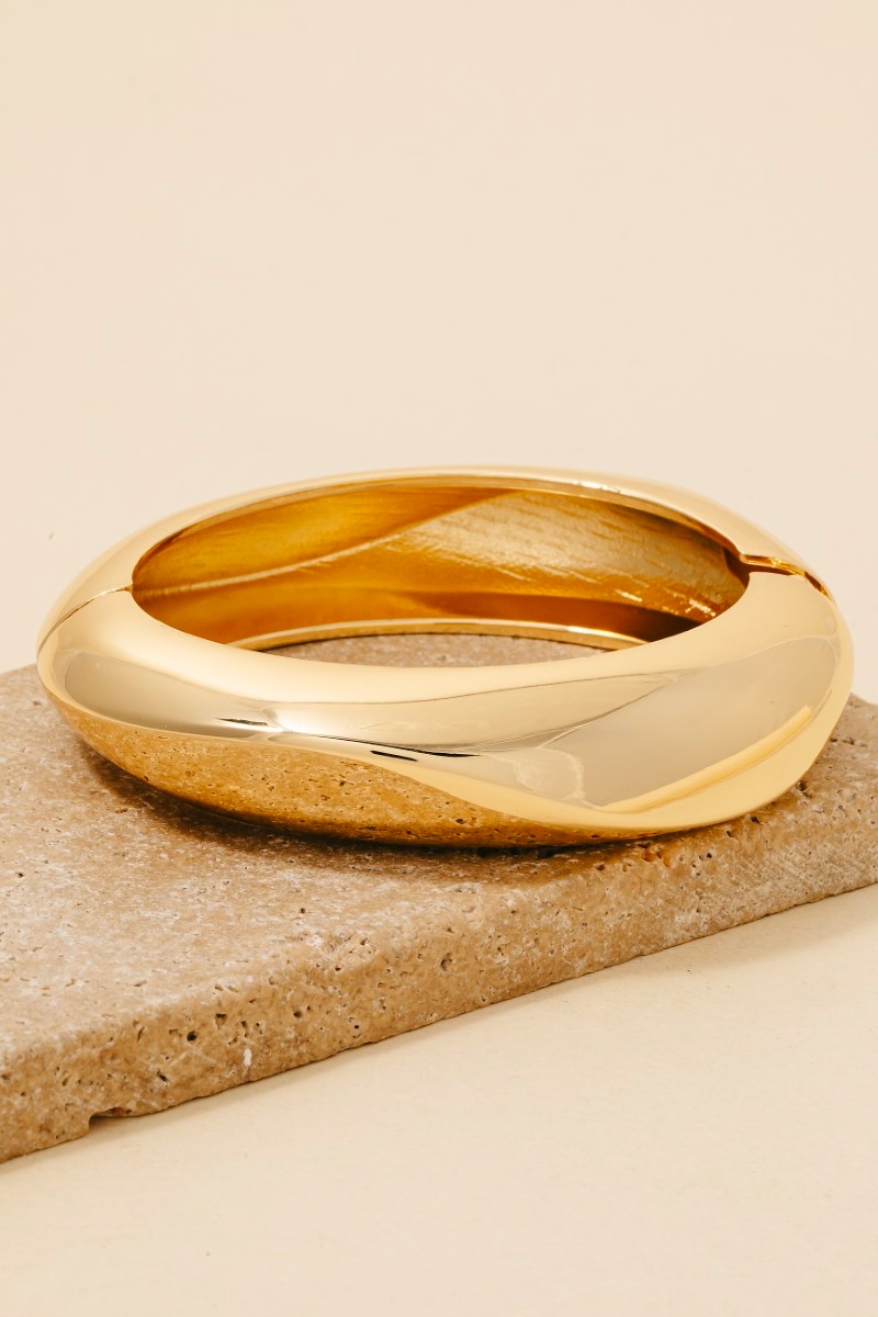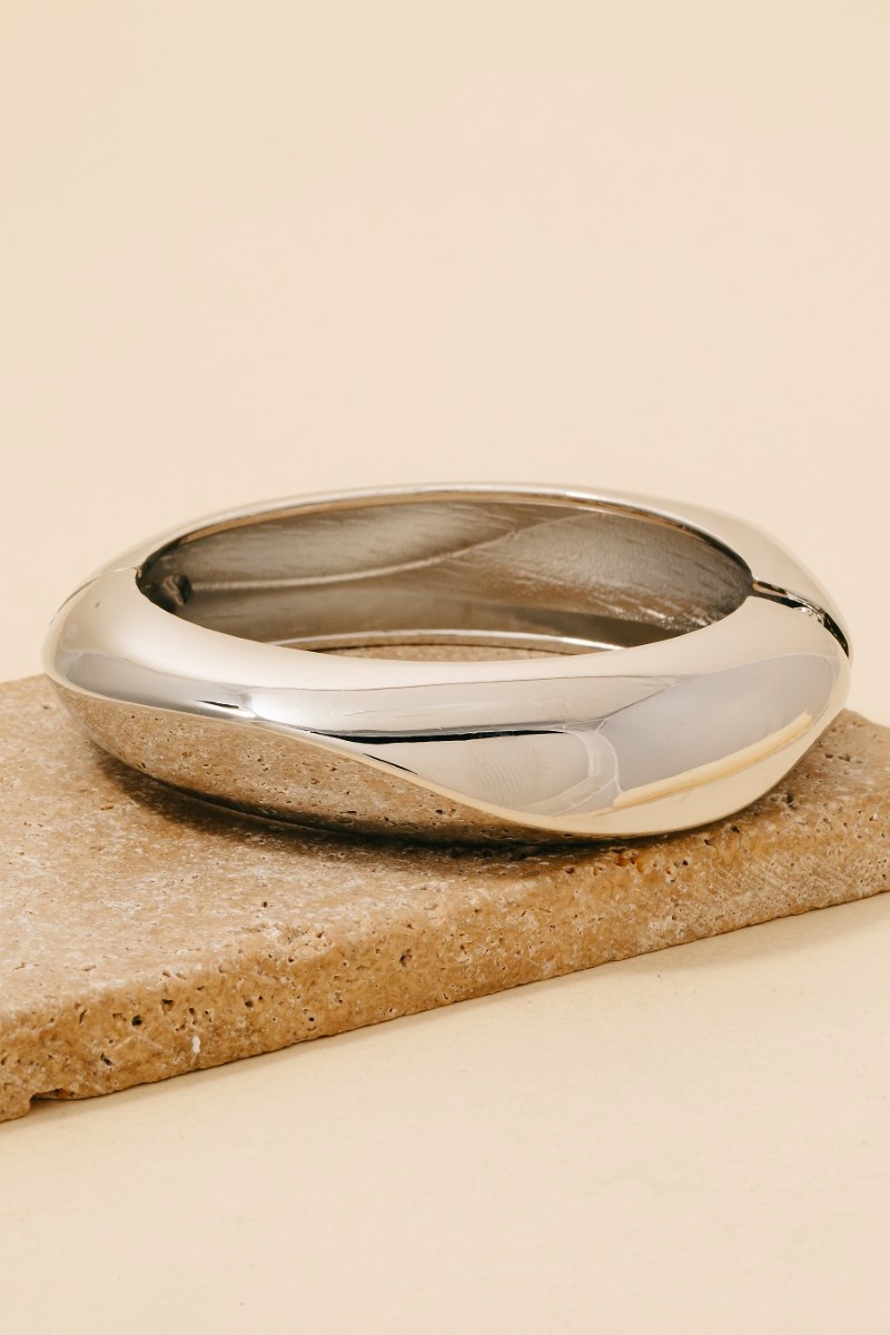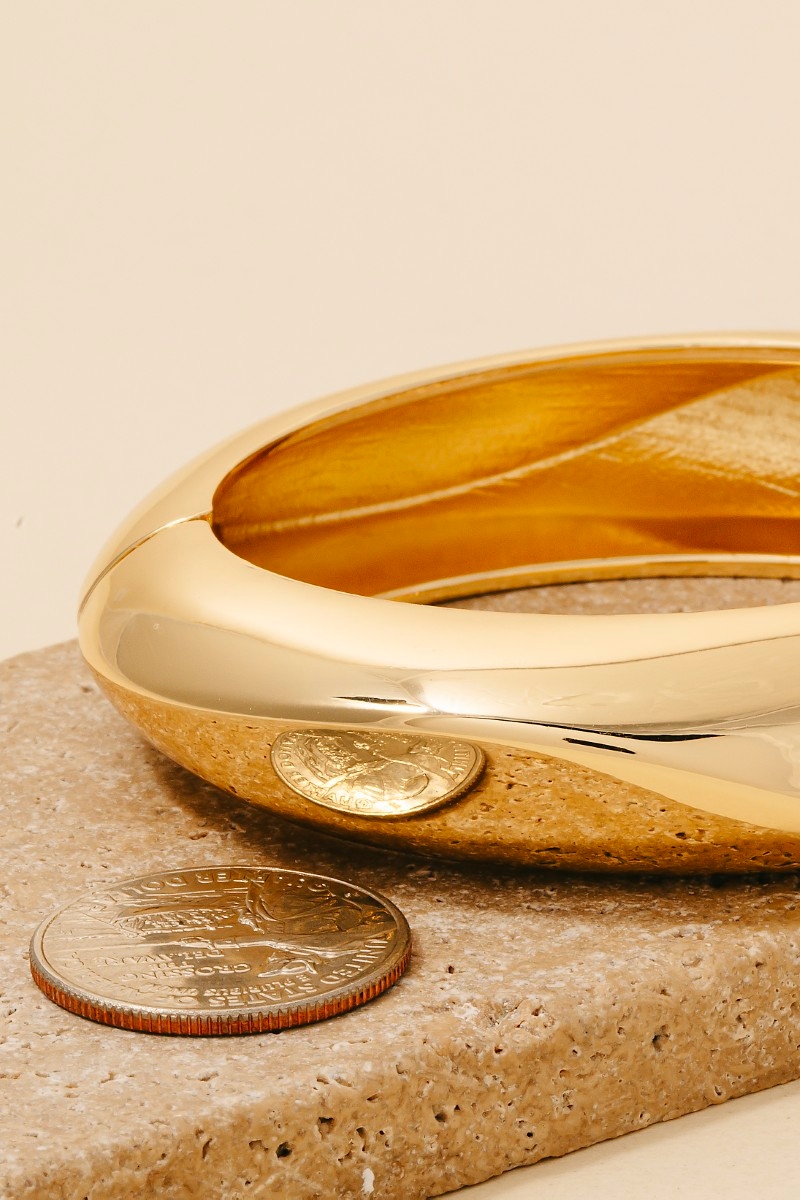 - A modern classic, this bangle bracelet presents a striking simple rounded hinge design. This item is a great way to add some texture and dimension to any outfit. Available in G, S. This item is sold in packs of 1.