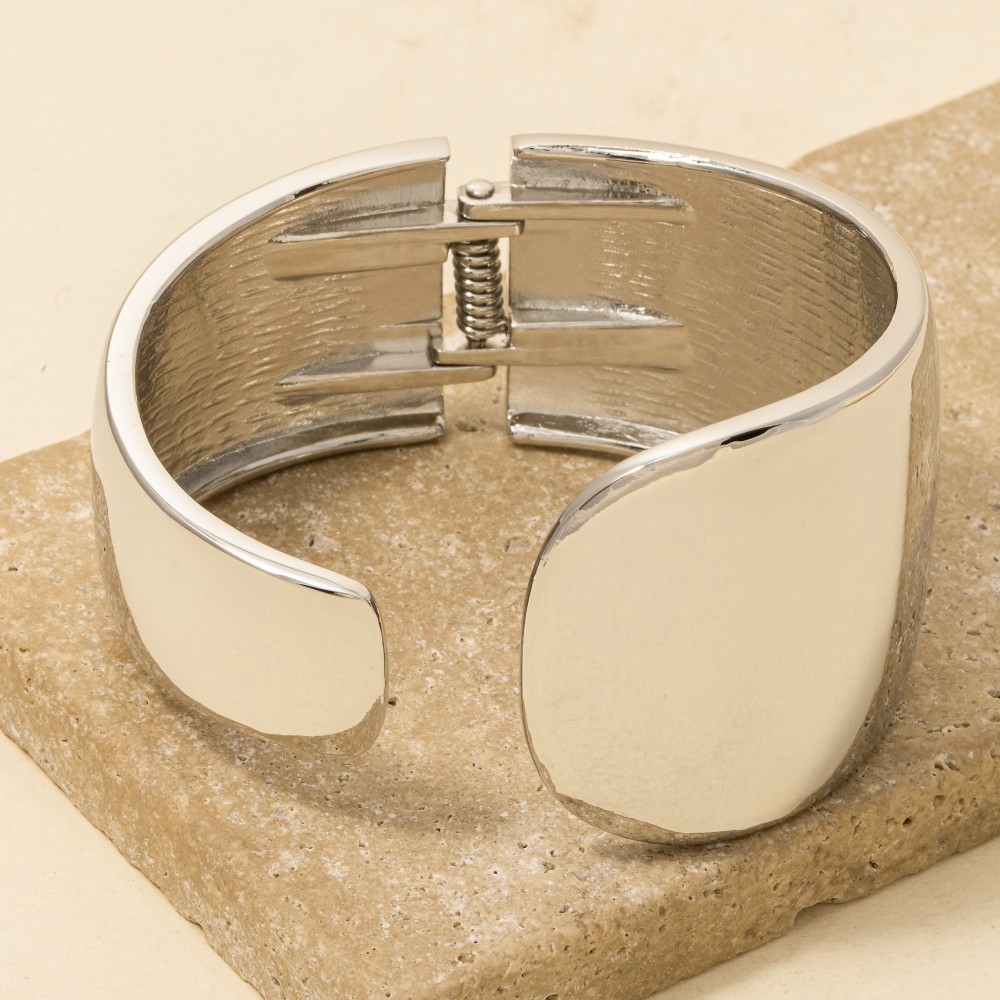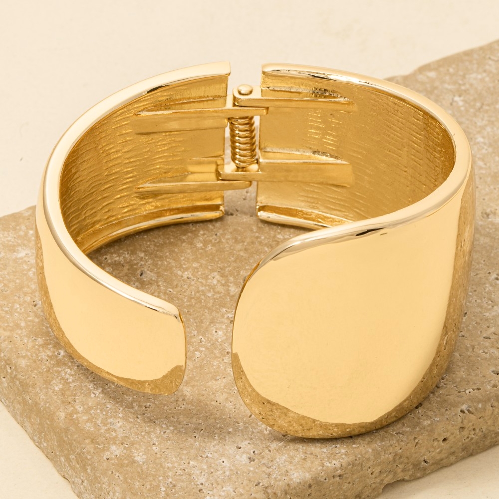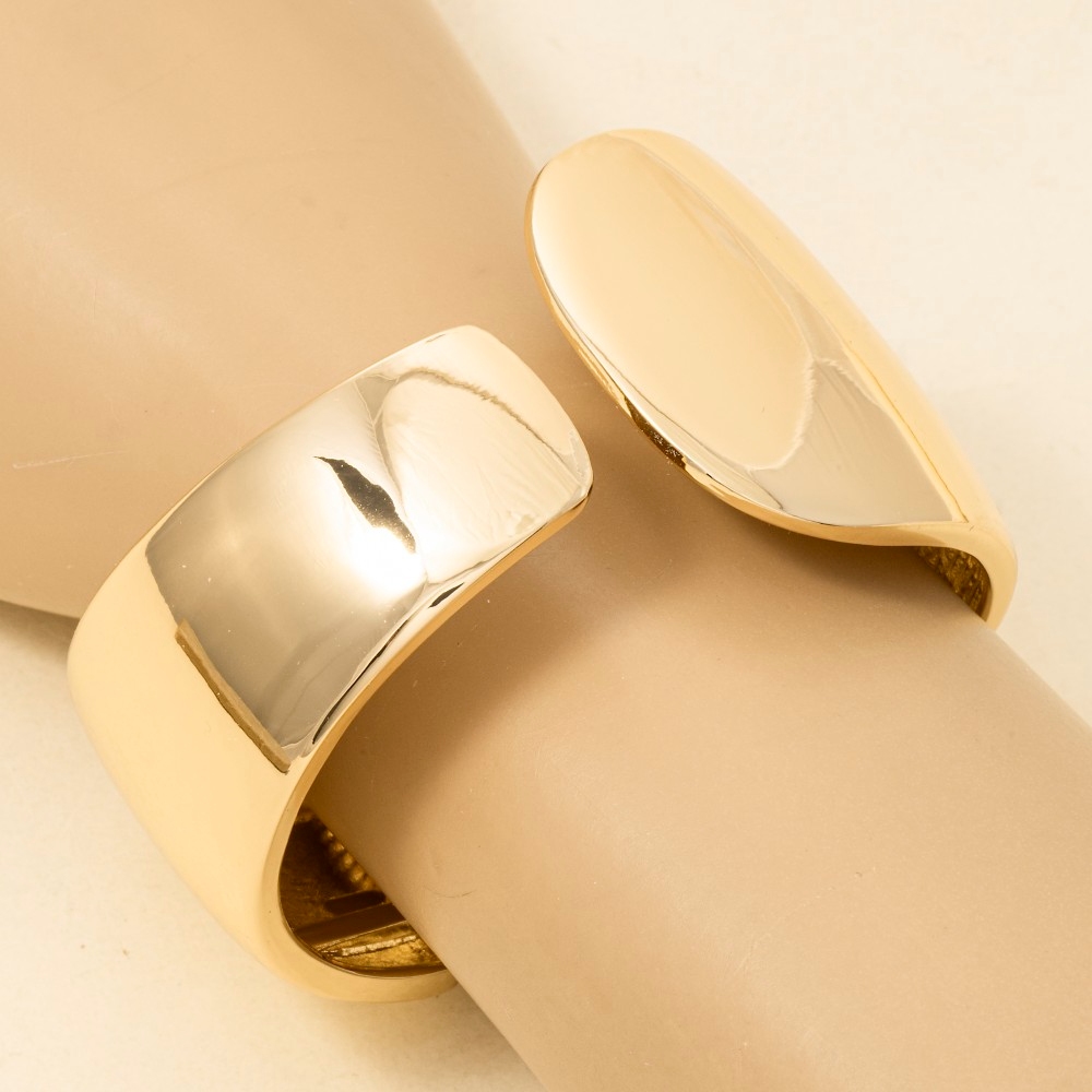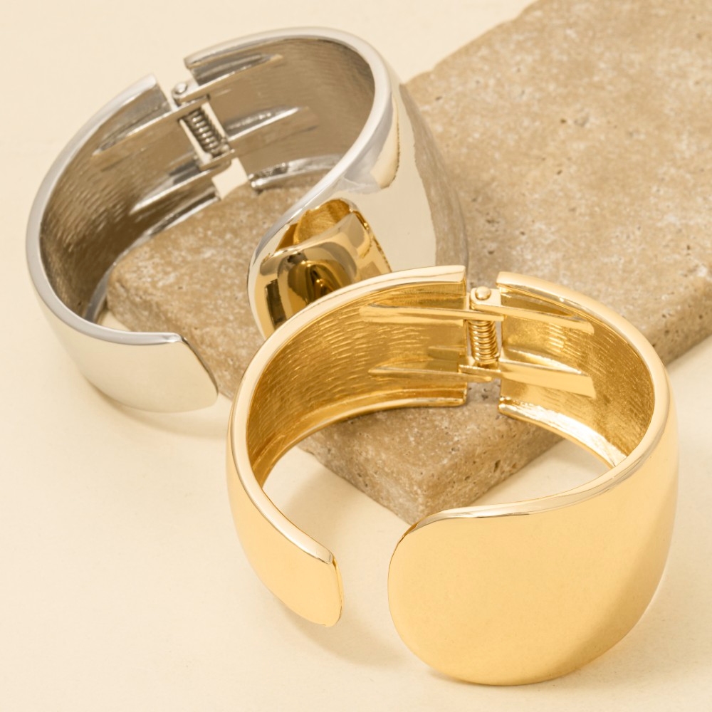 Guaranteed to add a touch of glamour to any outfit, this cuff bracelet evokes a captivating smooth flat hinged design. Embrace fashion flexibility with this versatile cuff bracelet, designed to effortlessly enhance the sophistication of any outfit. Available in G, S. This item is sold in packs of 1.