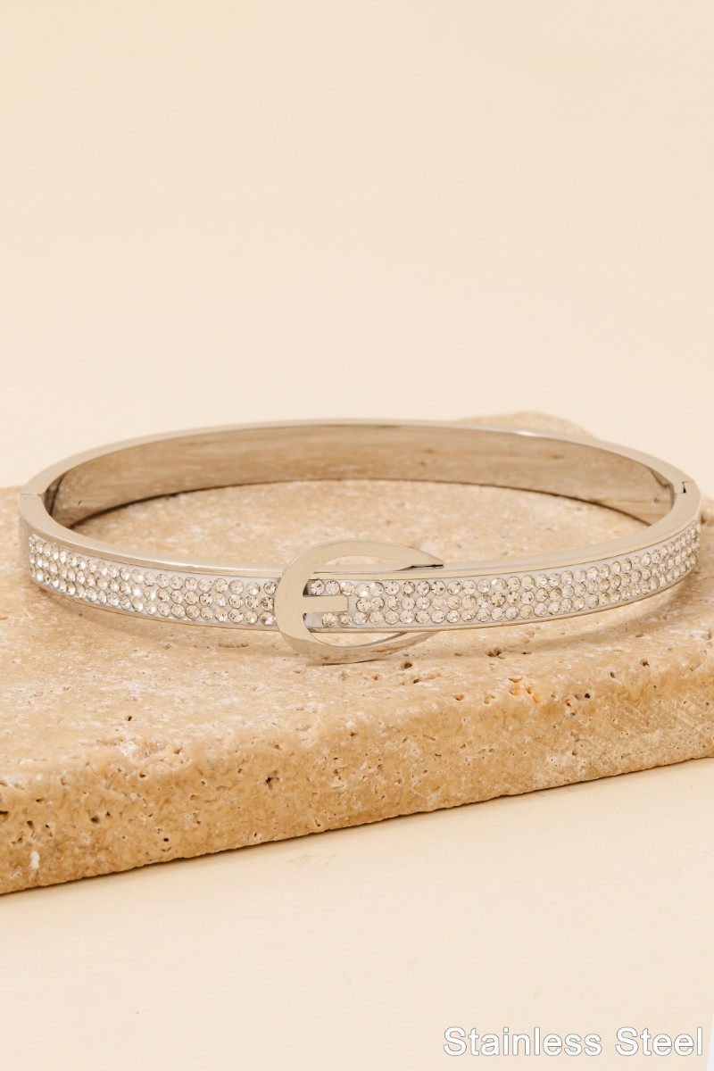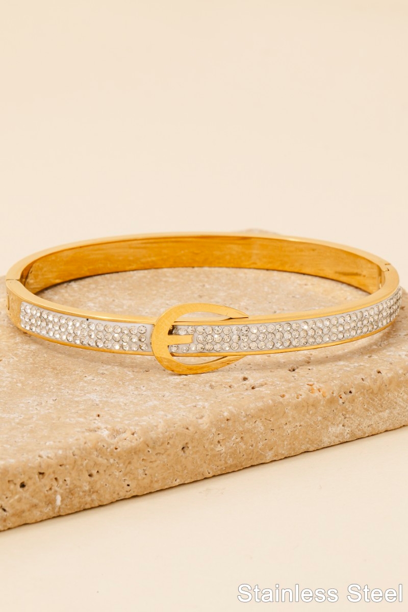 • A stunning addition to any jewelry collection, this bangle bracelet offers a remarkable stainless steel pave belt style hinge design. This item is ideal for those who want to add some personality to their outfits without being too bold. Available in G, S. This item is sold in packs of 1.