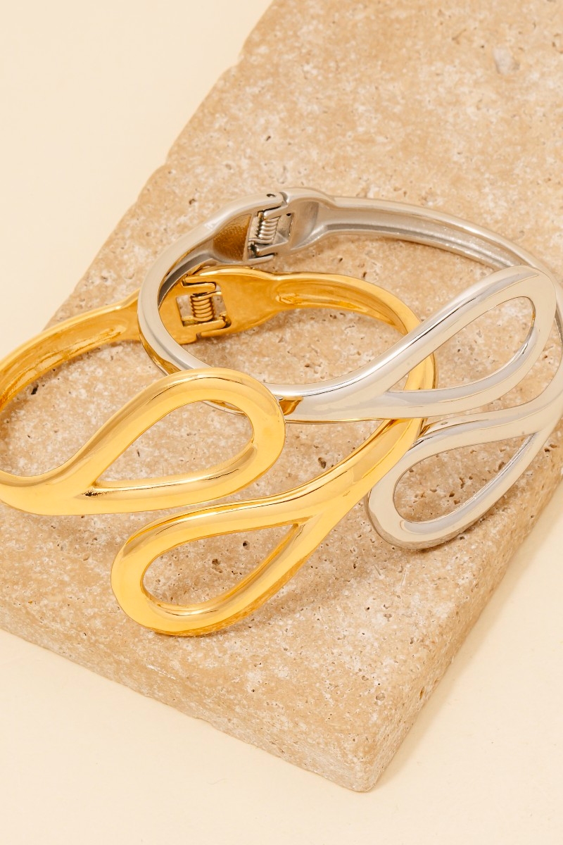 • A bold and daring choice that is sure to impress, this bangle bracelet features an exceptional stainless steel teardrop loops hine design. This item is a great way to add some texture and dimension to any outfit. Available in G, S. This item is sold in packs of 1.