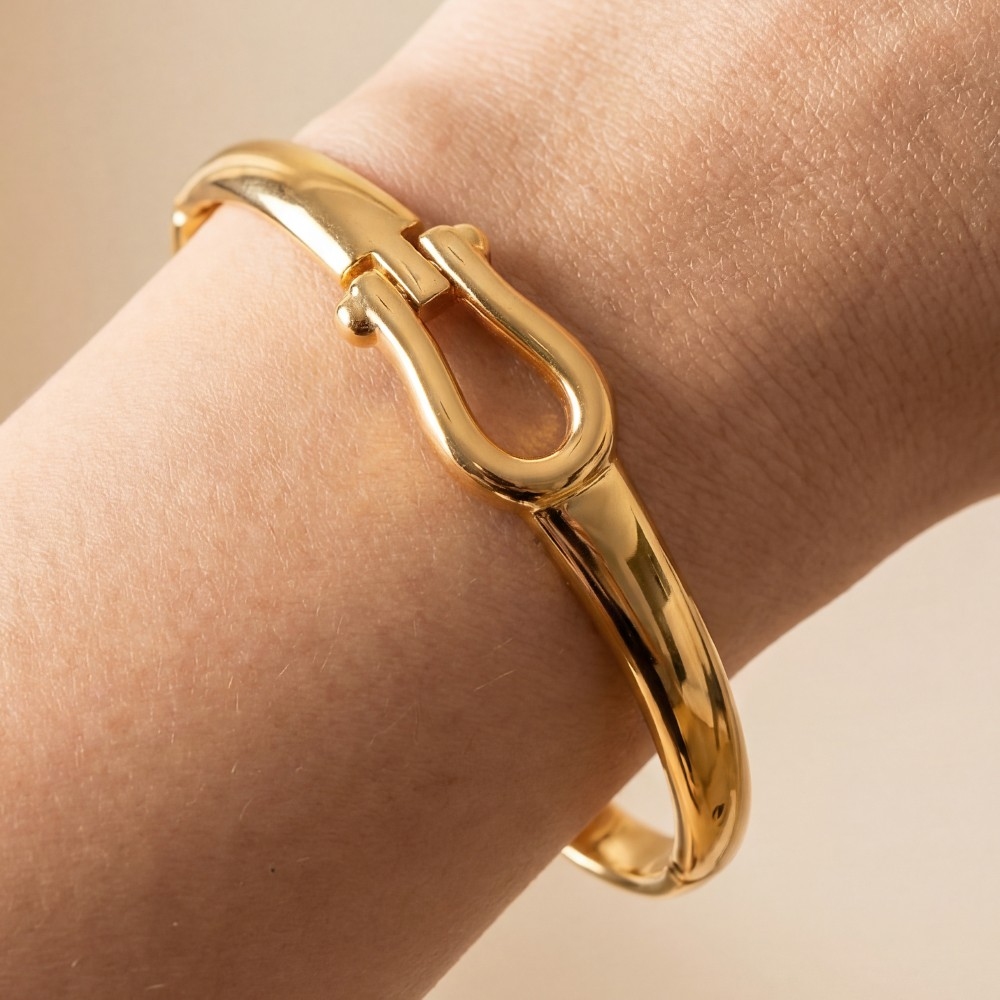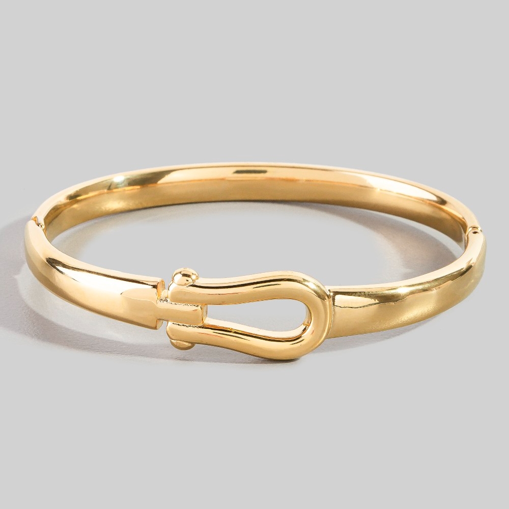 - Effortlessly elevate your outfit, this bangle bracelet showcases an alluring stainless steel u hinge design. Elevate your everyday style with this versatile bangle bracelet, a simple yet impactful addition to your fashion repertoire. Available in BG. This item is sold in packs of 1.