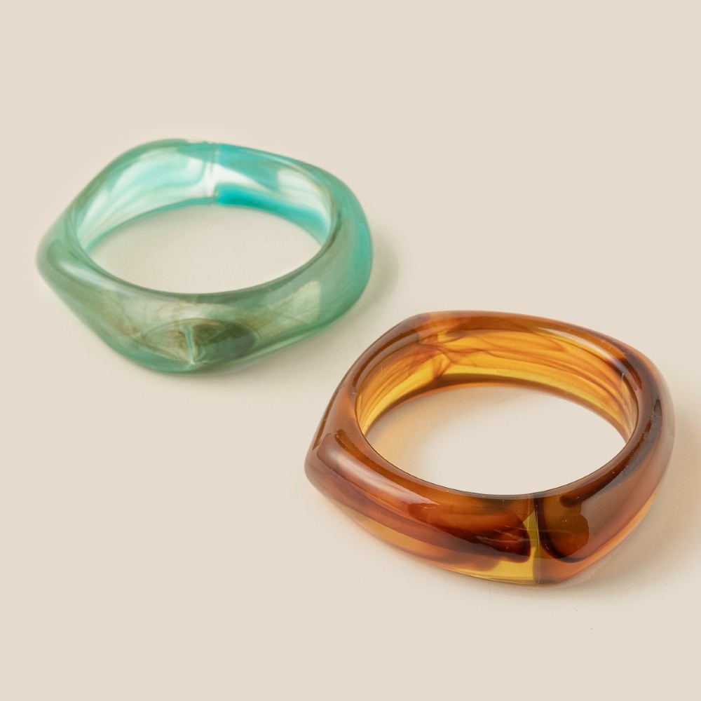 - Perfectly polished and endlessly versatile, this bangle bracelet reveals an intricate translucent chunky design. Achieve a perfect blend of style and sophistication with this versatile bangle bracelet, a fashion-forward choice for any occasion. Available in GN and BR. This item is sold in packs of 1.