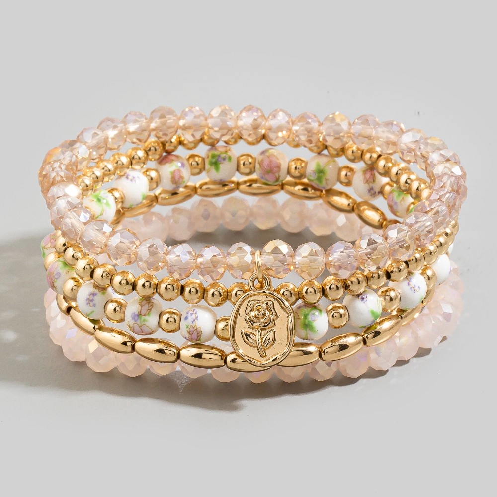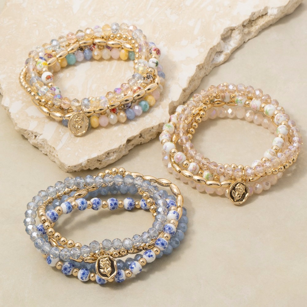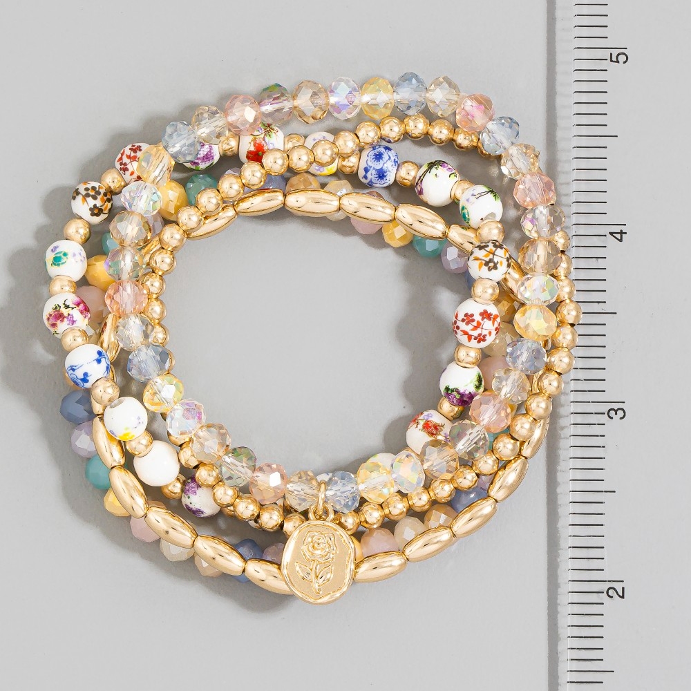- A versatile piece that can be dressed up or down, this bracelet possesses a fine floral ceramic and mixed beaded set design. This versatile bracelet adds a touch of elegance to any outfit. Available in BPINK, LBLU, LMUL. This item is sold in packs of 1.