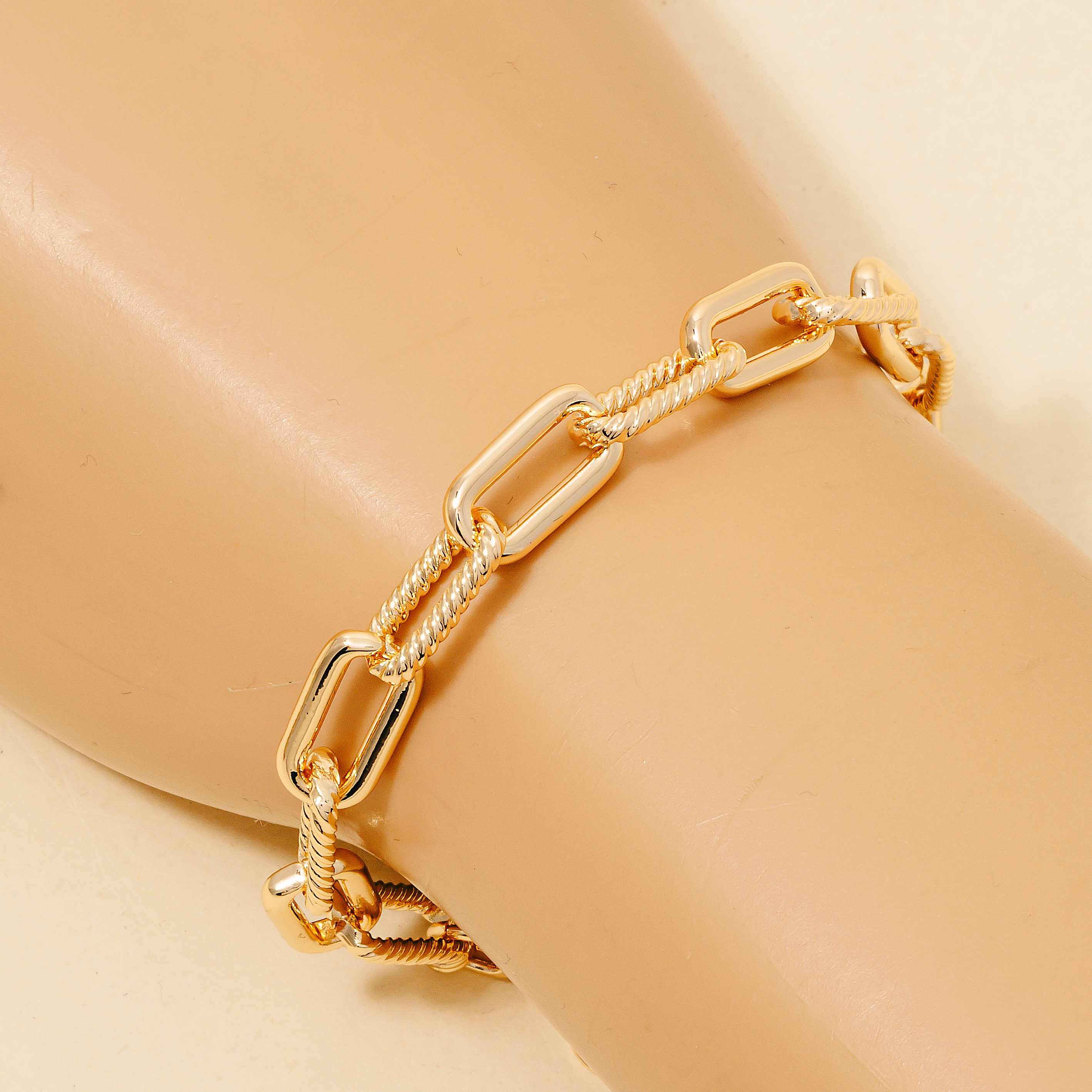 • Effortlessly elevate your style, this chain bracelet embodies a sophisticated gold dipped mixed rectangle design. This versatile chain bracelet adds a touch of elegance to any outfit. Available in G, X. This item is sold in packs of 12.