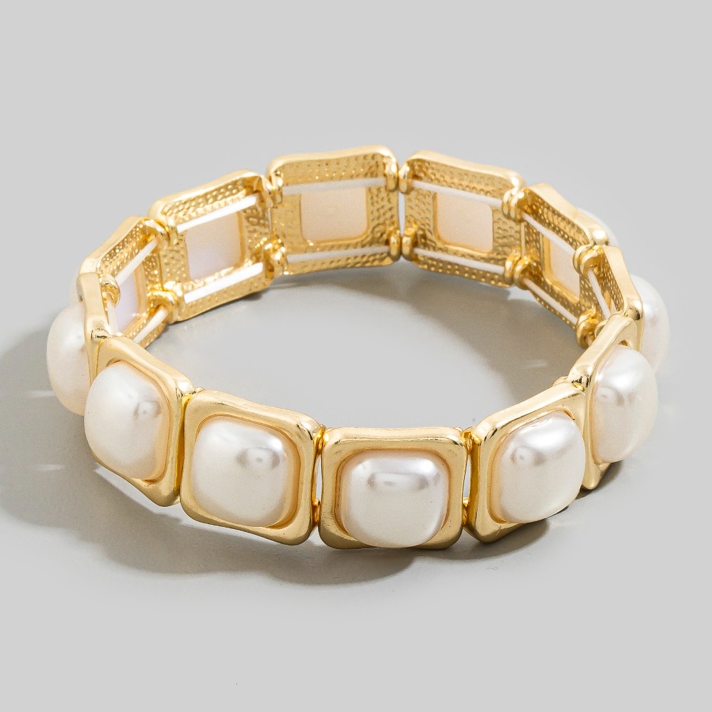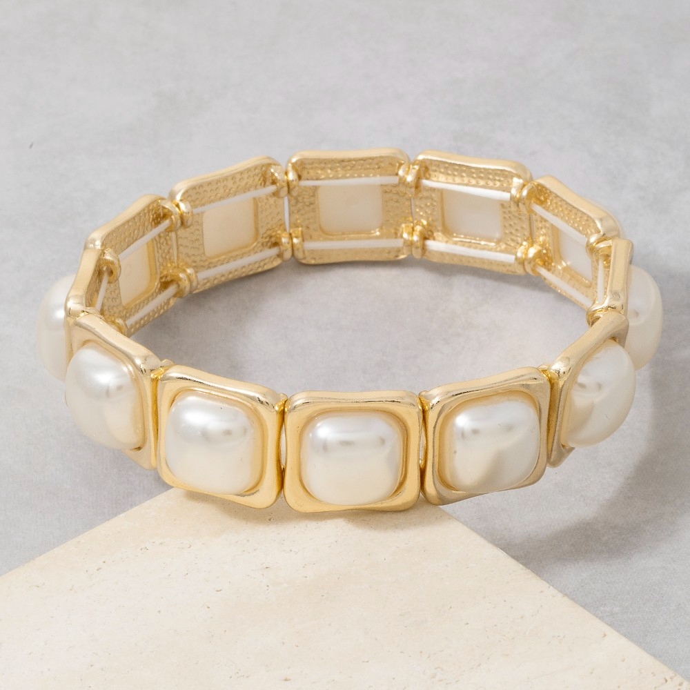 Sleek, modern, and always stylish, this stretch bracelet exudes a refined gold square link pearl design. Upgrade your fashion game with this versatile stretch bracelet, a timeless addition that complements any outfit seamlessly. Available in GDCM. This item is sold in packs of 1.