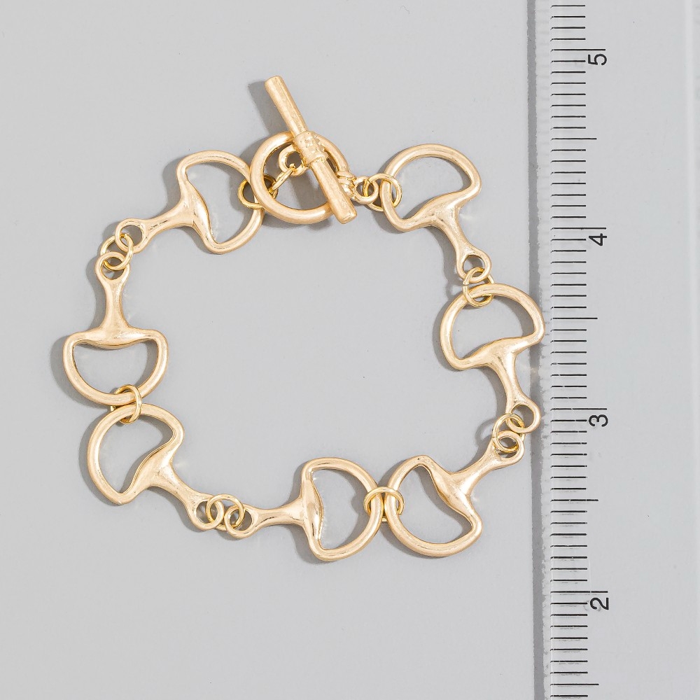 Gold Dipped Two Tone Heart Charm Toggle Chain Bracelet