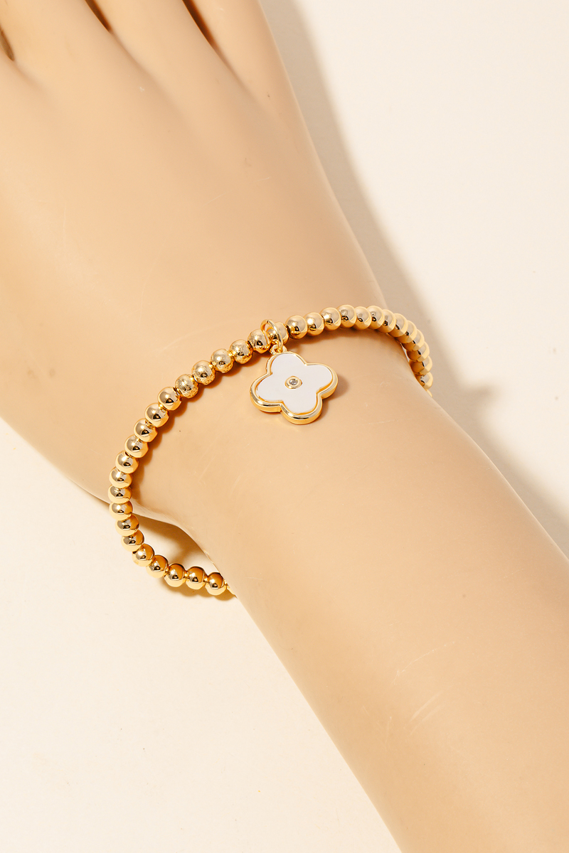This piece is designed to make a statement, this bracelet comes with a special mother of pearl clover charm bead design. A chic and sophisticated bracelet that's perfect for dressing up or down. Available in GM. This item is sold in packs of 12.