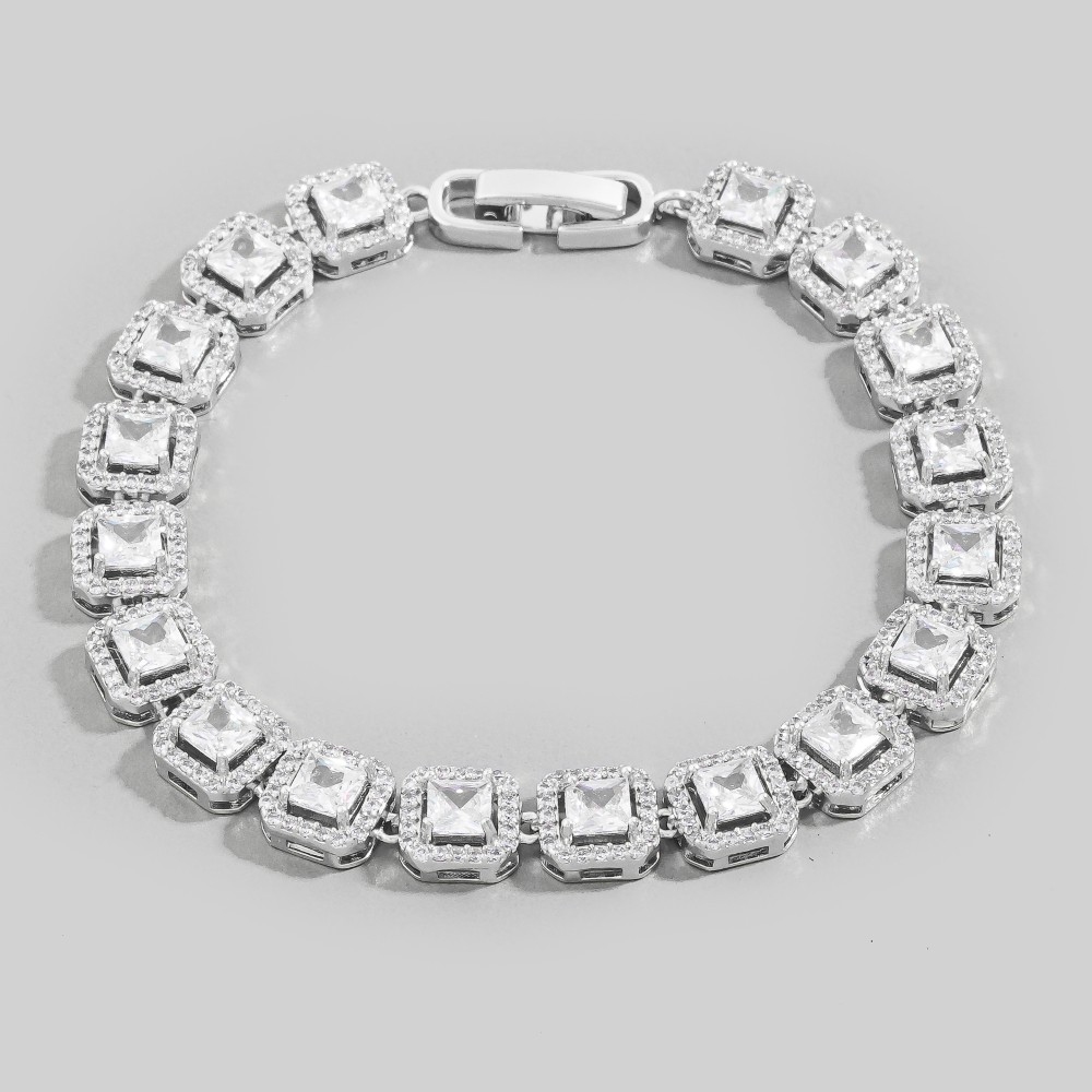Perfect for any occasion, this bracelet highlights a special square cubic zirconia chain link design. Experience the transformative power of this versatile bracelet, effortlessly enhancing the overall aesthetic of your outfit. This item is sold in packs of 1.