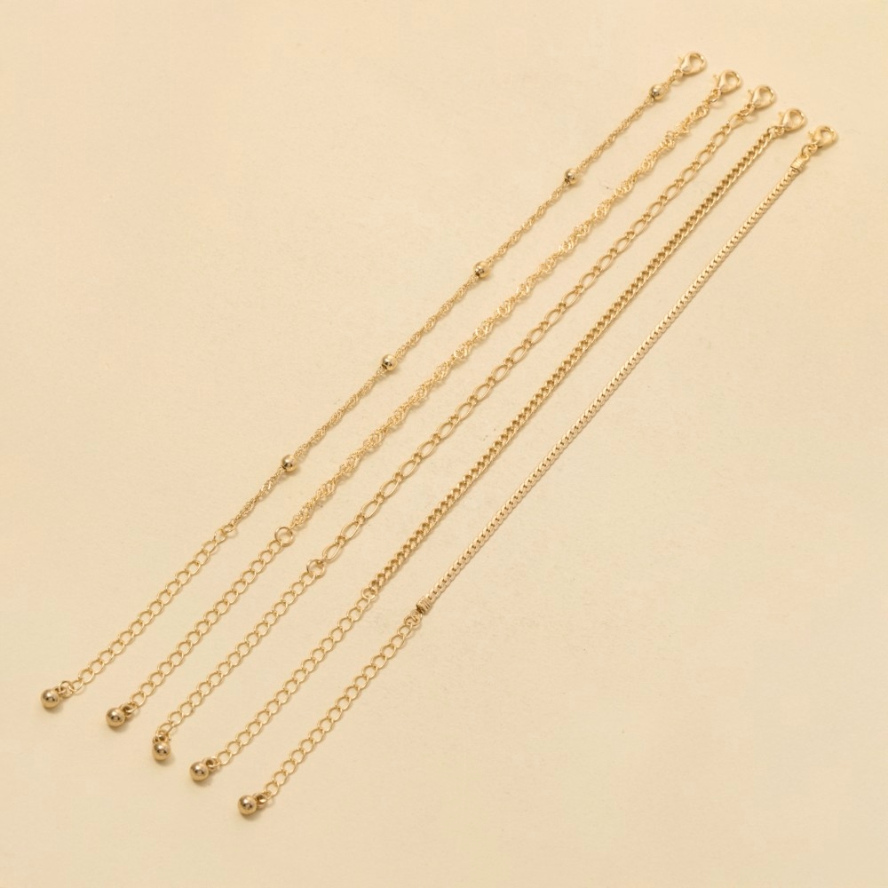 A must-have addition to any bracelet collection, this bracelet features an exceptional assorted dainty metallic chains set design. This bracelet is a great way to add some flair to your outfit without going over the top. Available in GD, RH. This item is sold in packs of 1.