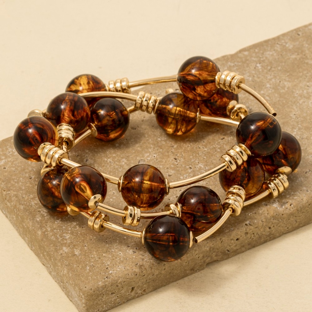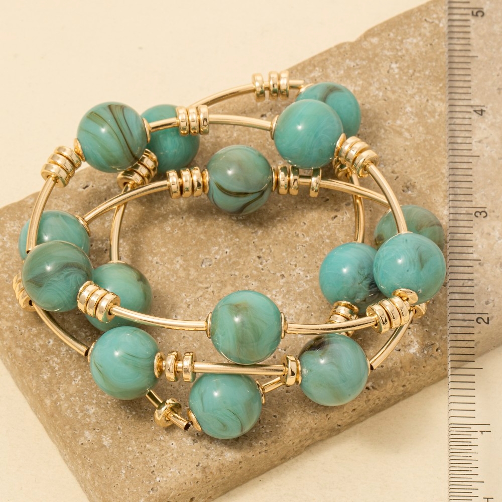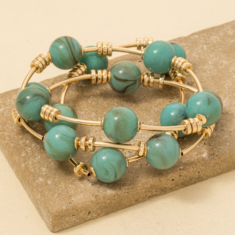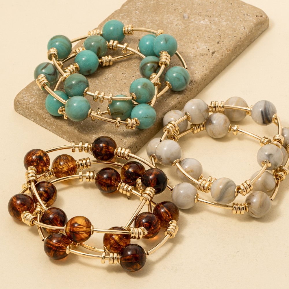 A piece that will never go out of style, this bracelet displays a unique marble resin and bar elastic set design. A must-have bracelet that effortlessly enhances your style, no matter the occasion. Available in GDBE, GDTO, GDTQ. This item is sold in packs of 1.