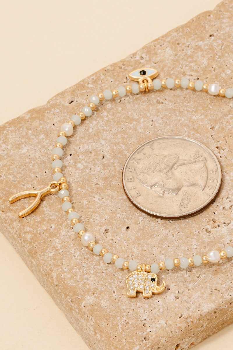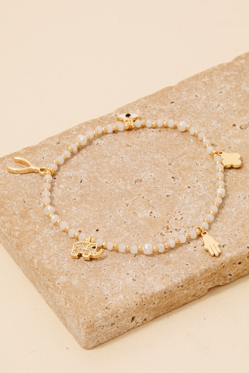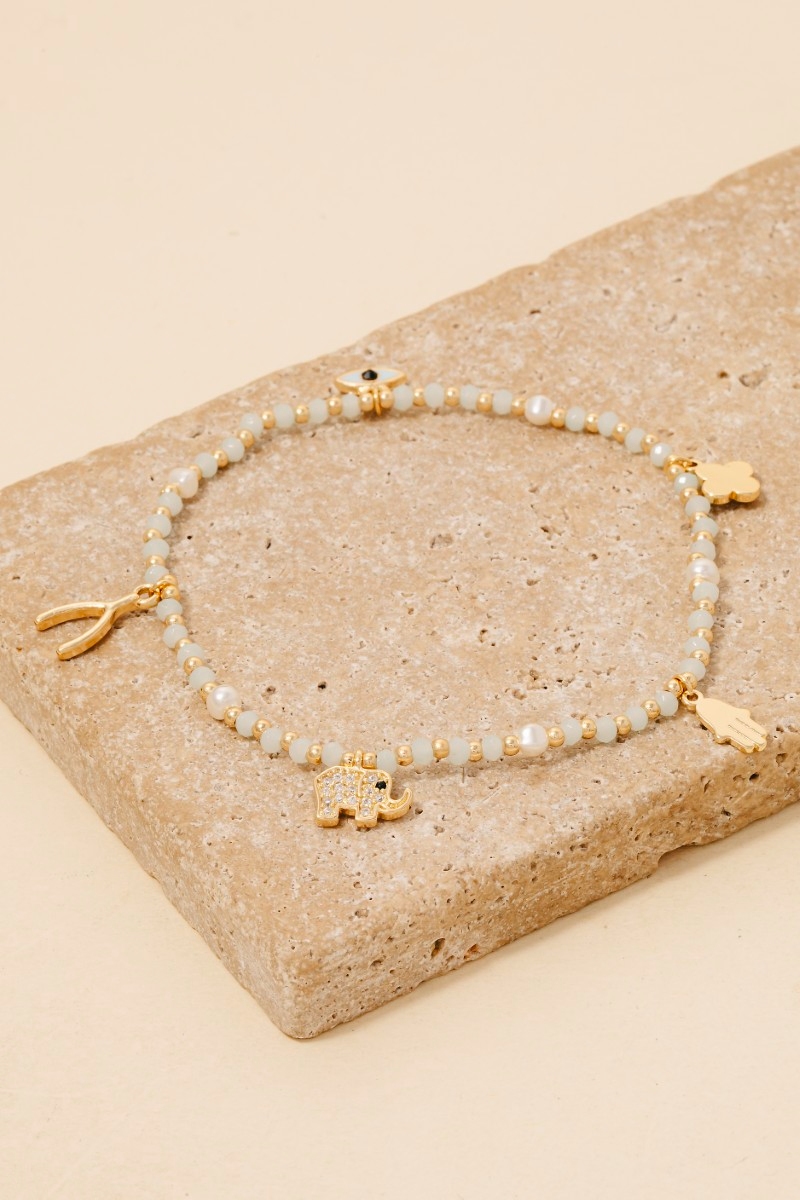 PAVE ELEPHANT CHARM, HAND OF HAMSA CHARM, CLOVER CHARM, WISHONE CHARM, EYE CHARM