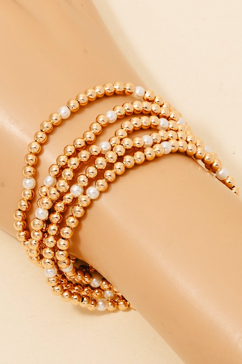 • The perfect way to add some sparkle to your outfit, this stackable bracelet boasts a magnificent multi pearl ball beaded bracelet set design. This item is a great way to add some texture and dimension to any outfit. Available in 2GD, 2RH, GD and RH. This item is sold in packs of 1.