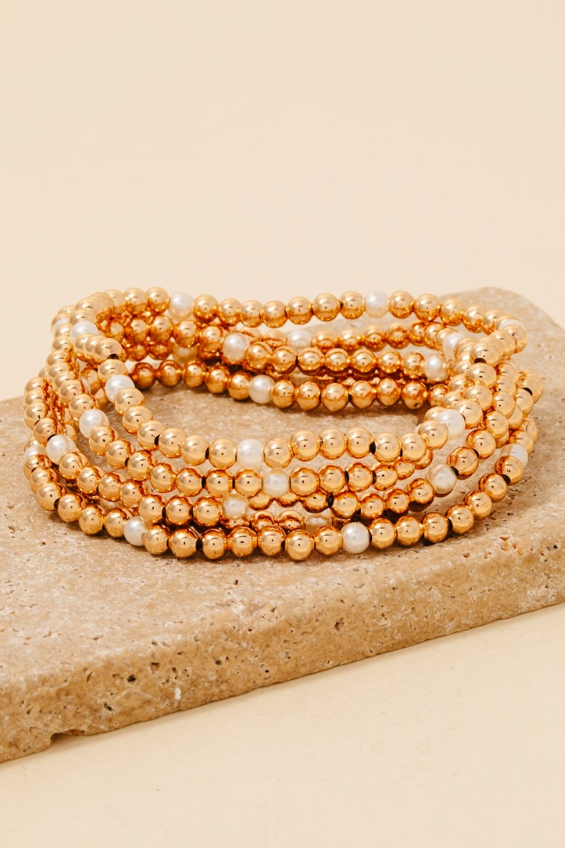 Gold Dipped Mixed Beaded Elastic Bracelet Set