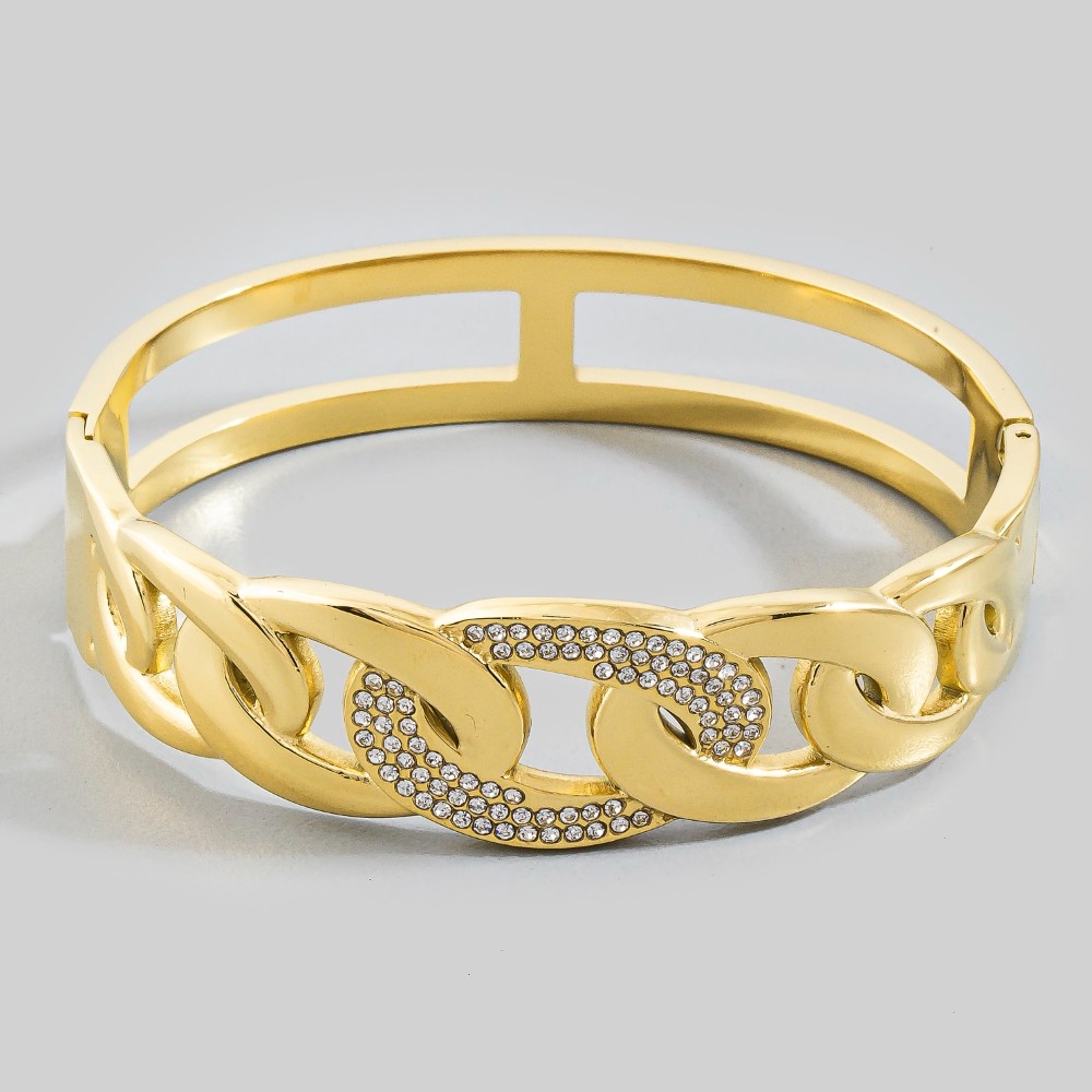 Stay ahead of the fashion curve, this bracelet showcases a breathtaking stainless steel chain pattern design. This item is the perfect finishing touch to any outfit, adding a touch of glamour and sophistication. Available in G, S. This item is sold in packs of 1.