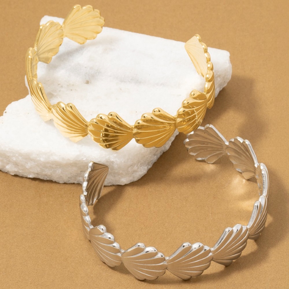 The perfect way to elevate any outfit, this cuff bracelet comes with a special stainless steel seashell open design. Perfect for adding some texture and dimension to any outfit, this cuff bracelet is a must-have. Available in G, S. This item is sold in packs of 1.
